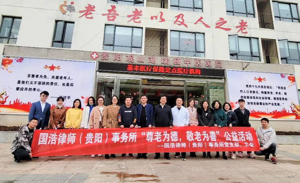 為落實習近平總書記“讓所有老年人都能老有所養、老有所依、老有所樂、老有所安”重要指示,2021年3月20日,在國浩貴陽黨支部的組織下,國浩律師(貴陽)事務所18名黨員律師、群眾律師前往貴陽市觀山湖區養老服務中心開展了“尊老為德,敬老為善”的公益活動,為養老服務中心的老人送去了溫暖的問候。國浩貴陽黨支部書記、合伙人蘭鋼,黨支部宣傳委員、律師涂丹,國浩貴陽合伙人賈明、律師夏曉云等參加了活動。