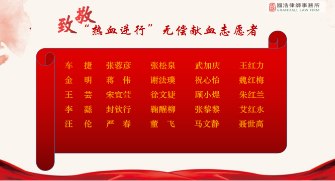 自南京發生疫情以來,南京血庫出現季節性缺血,臨床用血告急!為響應南京市律師協會聯合市血液中心2021年8月11日發布的“熱血逆行·我們需要您”無償獻血倡議,國浩南京、國浩南京黨委高度重視,迅即動員國浩南京全體律師積極參加無償獻血活動。國浩南京律師踴躍報名,短短1個小時內,報名的志愿者就已達20多名。