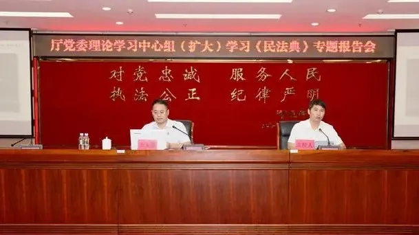 7月1日上午,沈田豐律師在杭州市江干區(qū)委理論學(xué)習(xí)中心組(擴(kuò)大)學(xué)習(xí)會上,為江干區(qū)領(lǐng)導(dǎo)干部作《民法典》專題解讀。