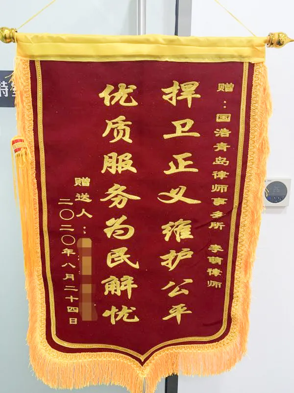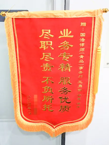 兩位受援人雖年事已高,仍親自登門送來一面印有“捍衛正義 維護公平 優質服務 為民解憂”的鮮艷錦旗,表達了對國浩青島及李萌律師真摯的感謝。