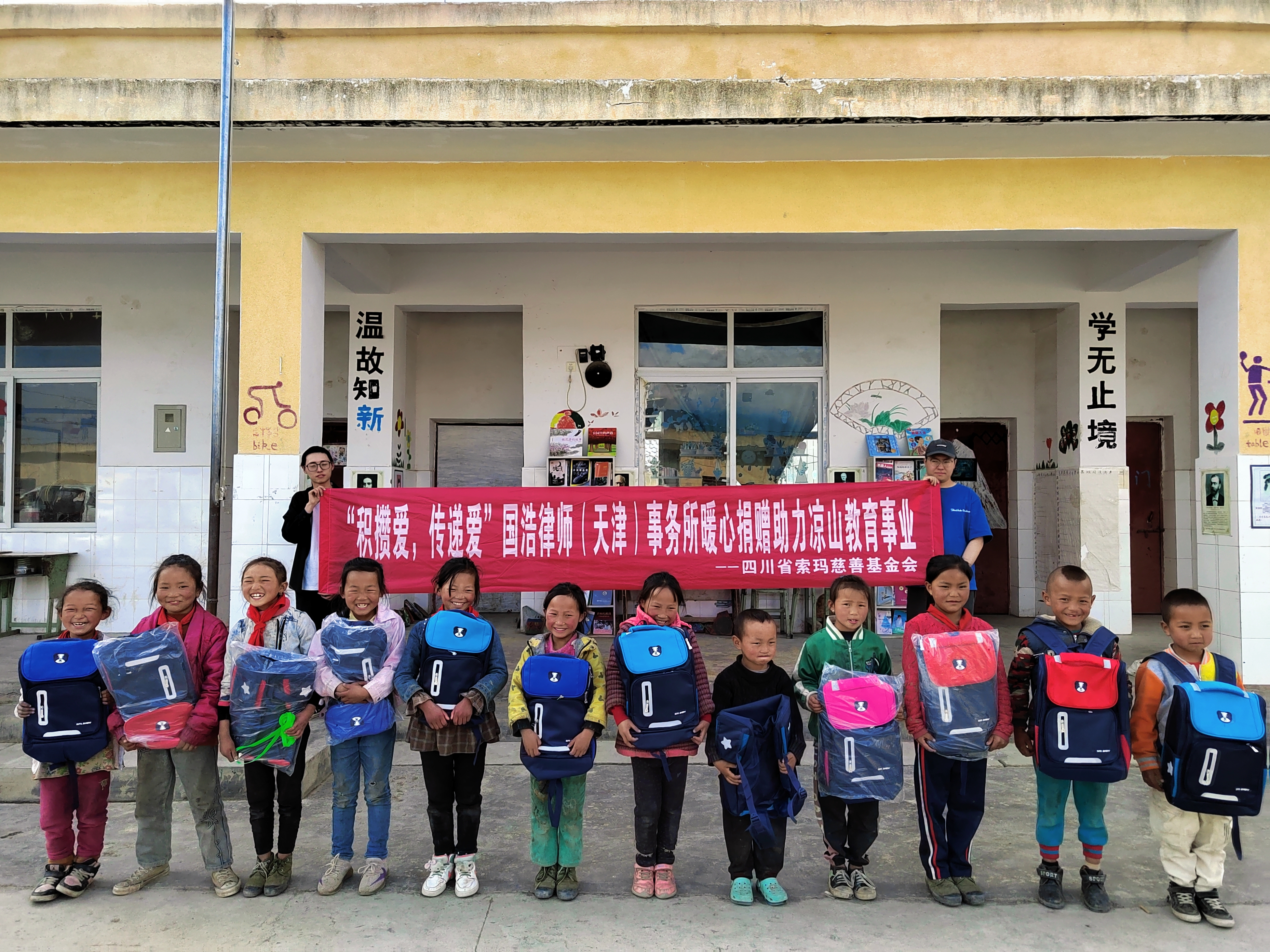 此前,國浩天津在國浩天津女工委的號召下組織開展了“愛心助學”讀書日公益活動,向四川省涼山彝族自治州希望小學捐贈了包括兒童文學、自然科學等書籍以及70套書包文具套裝在內共16箱物資,經過5天的運輸于4月28日送到了孩子們的手中。