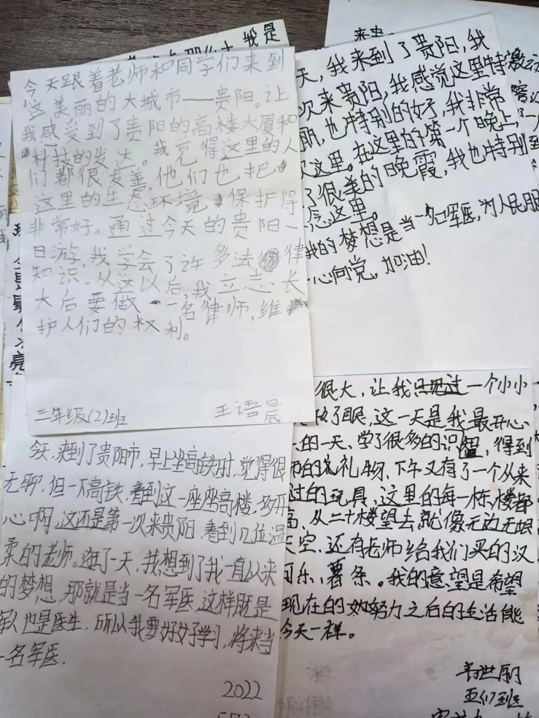 “這次來貴陽參加活動的學生,幾乎是第一次走出榕江縣,他們都很激動!”帶隊老師楊娟說道。在回程大巴車上,國浩貴陽的同行人員收到了來自孩子們的手寫信,其中三年級二班的王語晨在信中說“從這里回去以后,我立志長大后要做一名律師,維護人們的權利。”