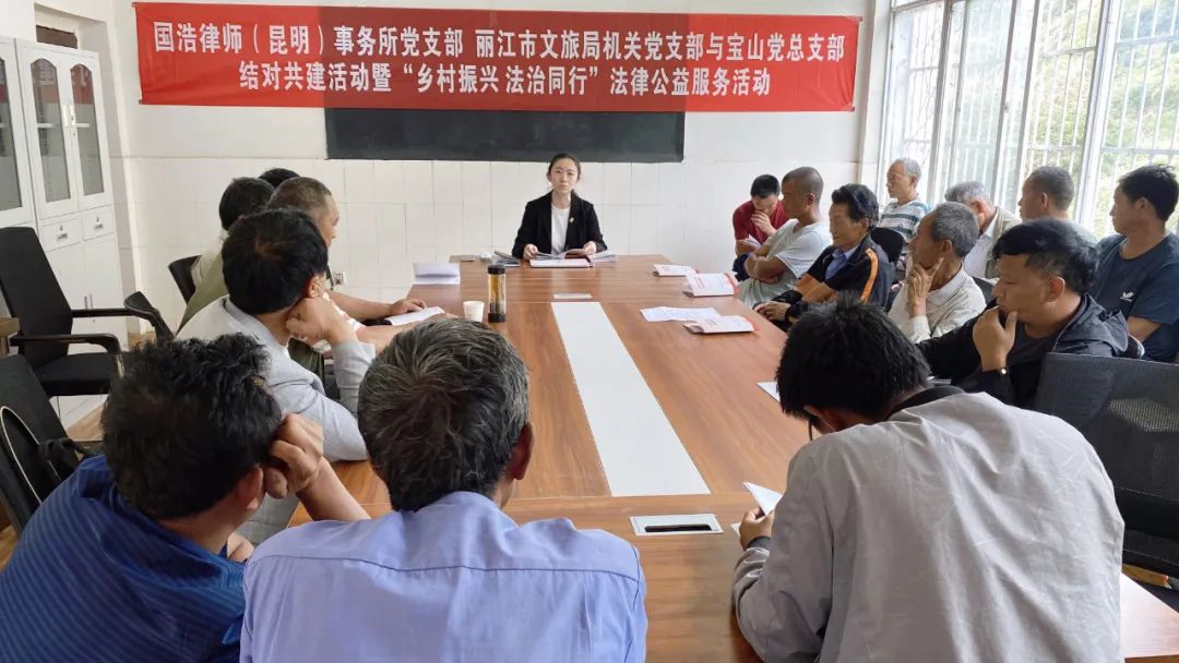 為深入貫徹落實習近平總書記關于實施鄉村振興戰略的重要論述和《中共中央 國務院關于實施鄉村振興戰略的意見》文件精神,充分發揮律師在鄉村振興中的職能作用,2022年6月13日,國浩昆明黨支部與麗江市文旅局機關黨支部、寶山黨總支部開展了結對共建活動暨“鄉村振興 法治同行”公益法律服務活動。