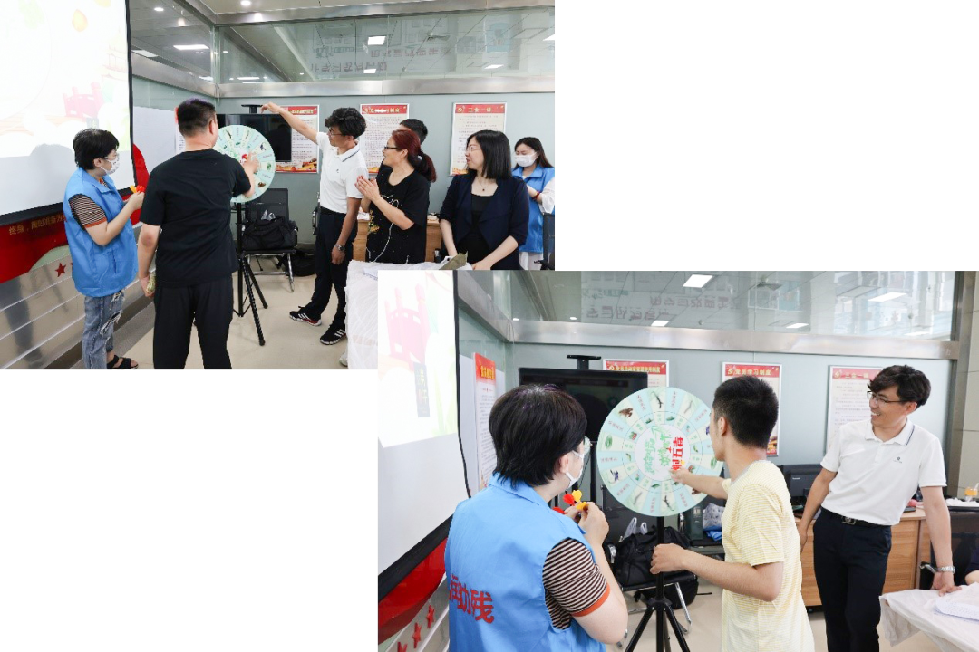 “慢飛天使”以家庭為單位,參與了端午節(jié)射五毒抽獎大轉(zhuǎn)盤游戲,家長和“慢飛天使”默契配合,引發(fā)了贊嘆連連。