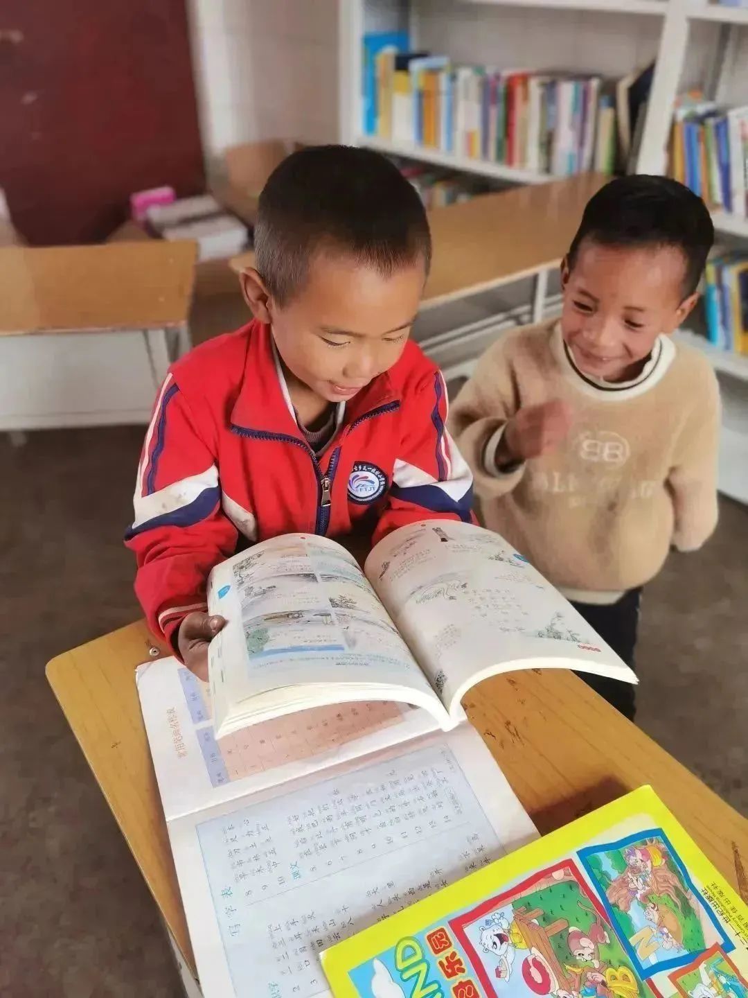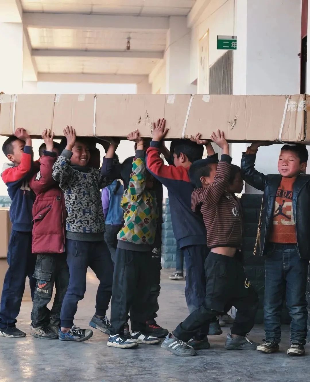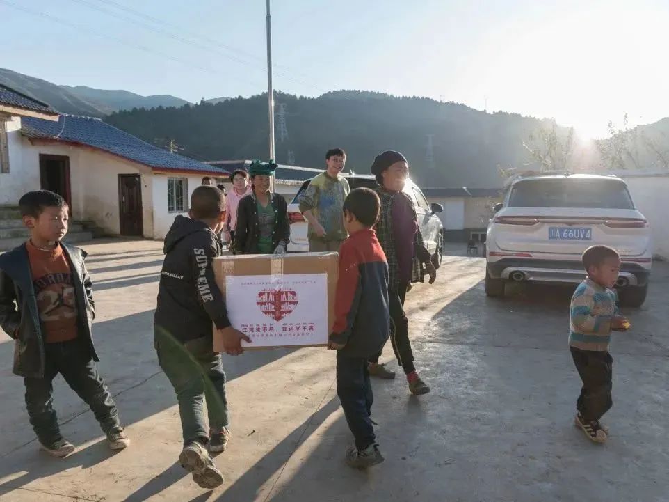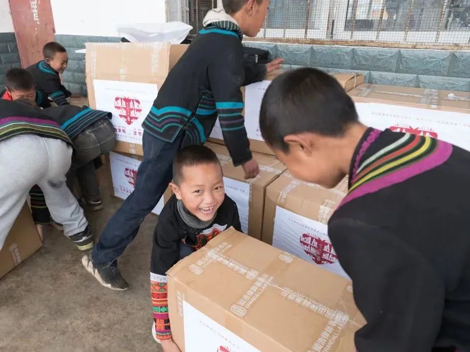 夕陽正好,暖黃色的光撒在山村的每一個角落,孩子們歡呼著跑來,帶著跟陽光一般溫暖的笑意。小朋友們、村民們得知來意,都積極地幫著搬書。“有些七八歲樣子的小朋友也要加入進(jìn)來,起初我們十分擔(dān)心,害怕小朋友受傷,可看著兩個小小的孩子卻能搬動一個成年人都無法輕松搬起的書箱時,我們的眼睛泛起酸澀。聽老師說,這里的小朋友們從小幫家里干農(nóng)活,力氣都很大。”公益委的小伙伴們對此感慨不已。