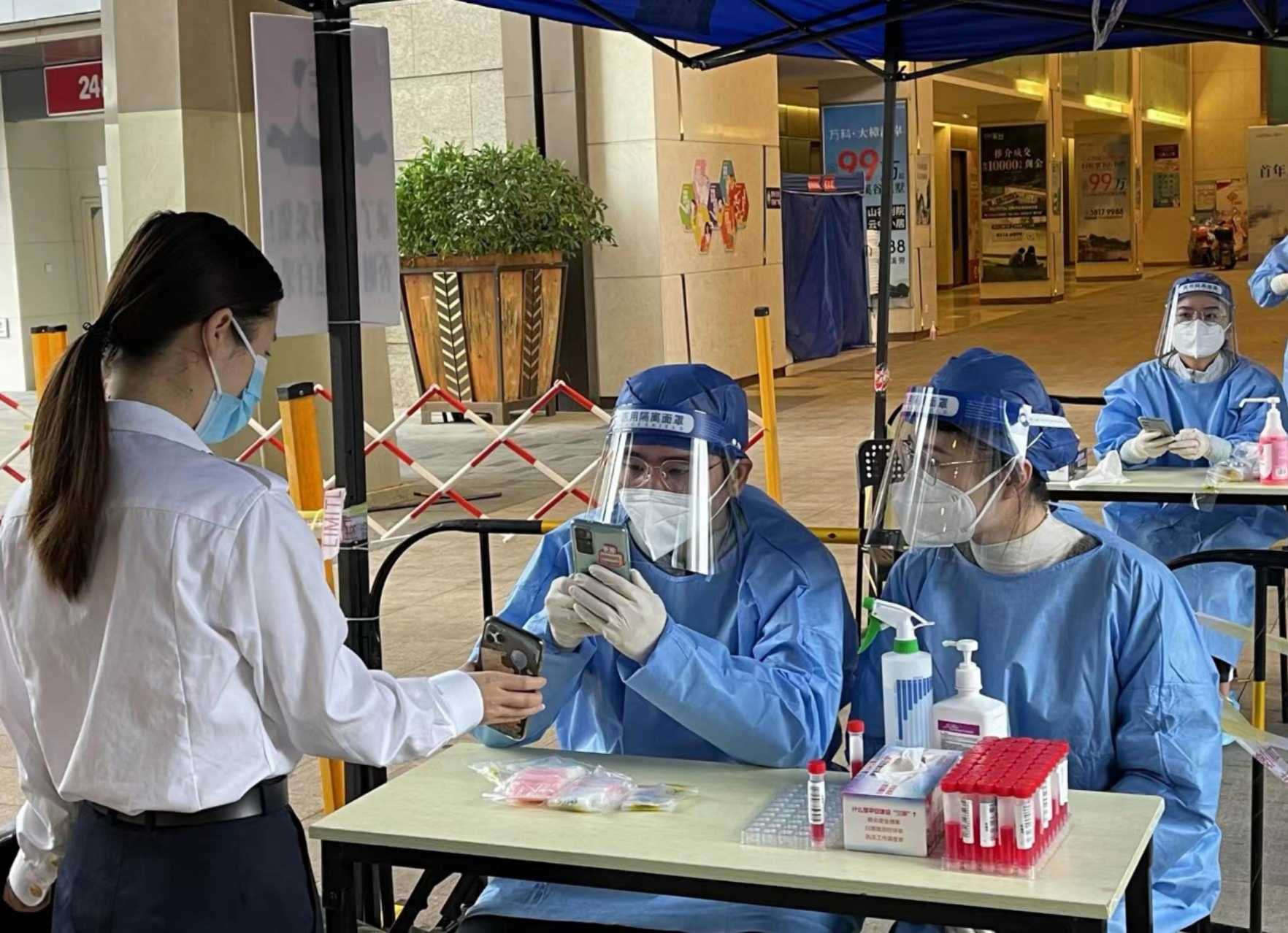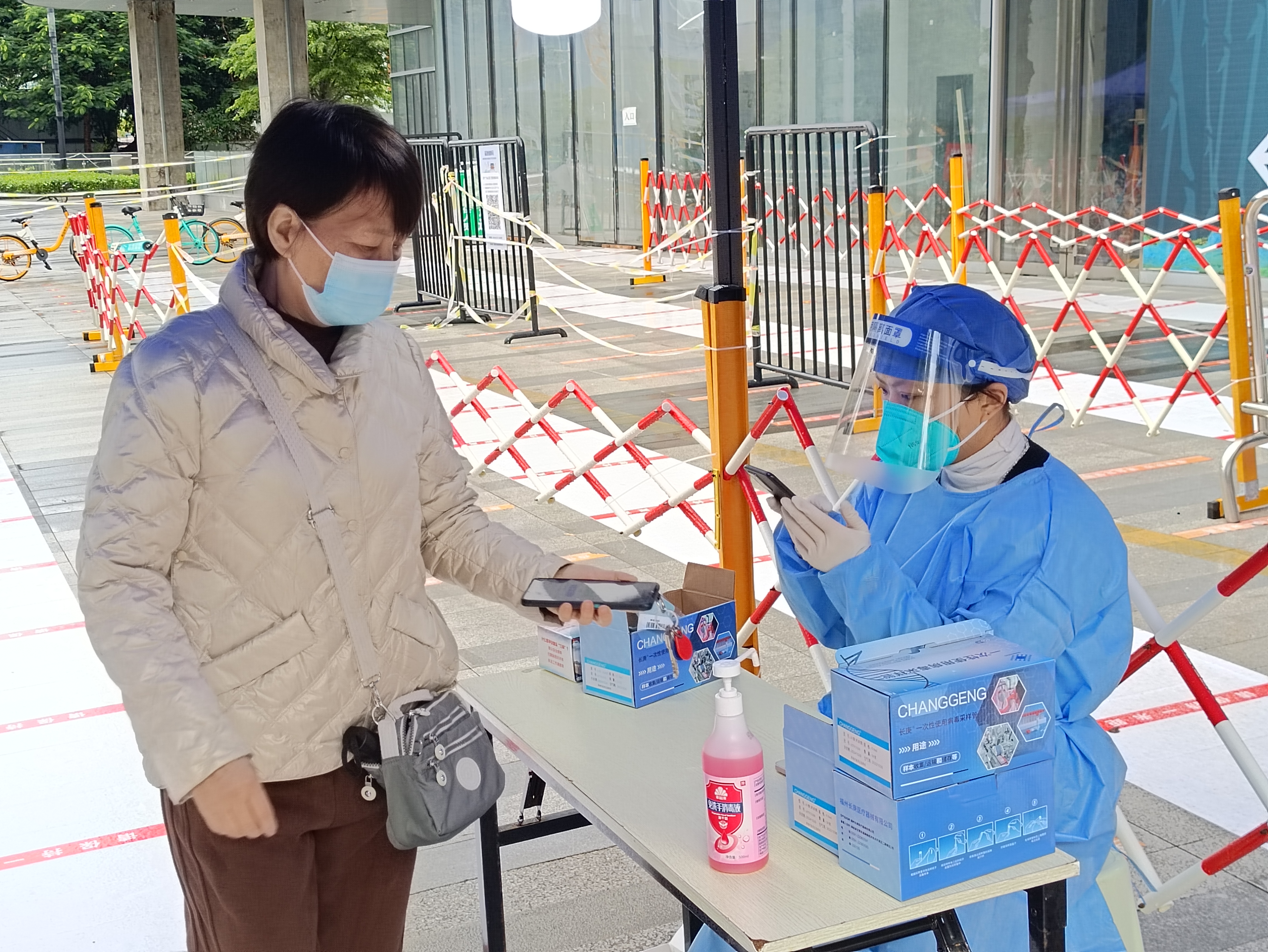 11月2日上午,國浩福州律師何桑、律師助理曾姿健在升龍環球中心附近核酸檢測點參加志愿服務。兩位律師負責健康碼登記信息采集,確保核酸檢測工作順利進行。