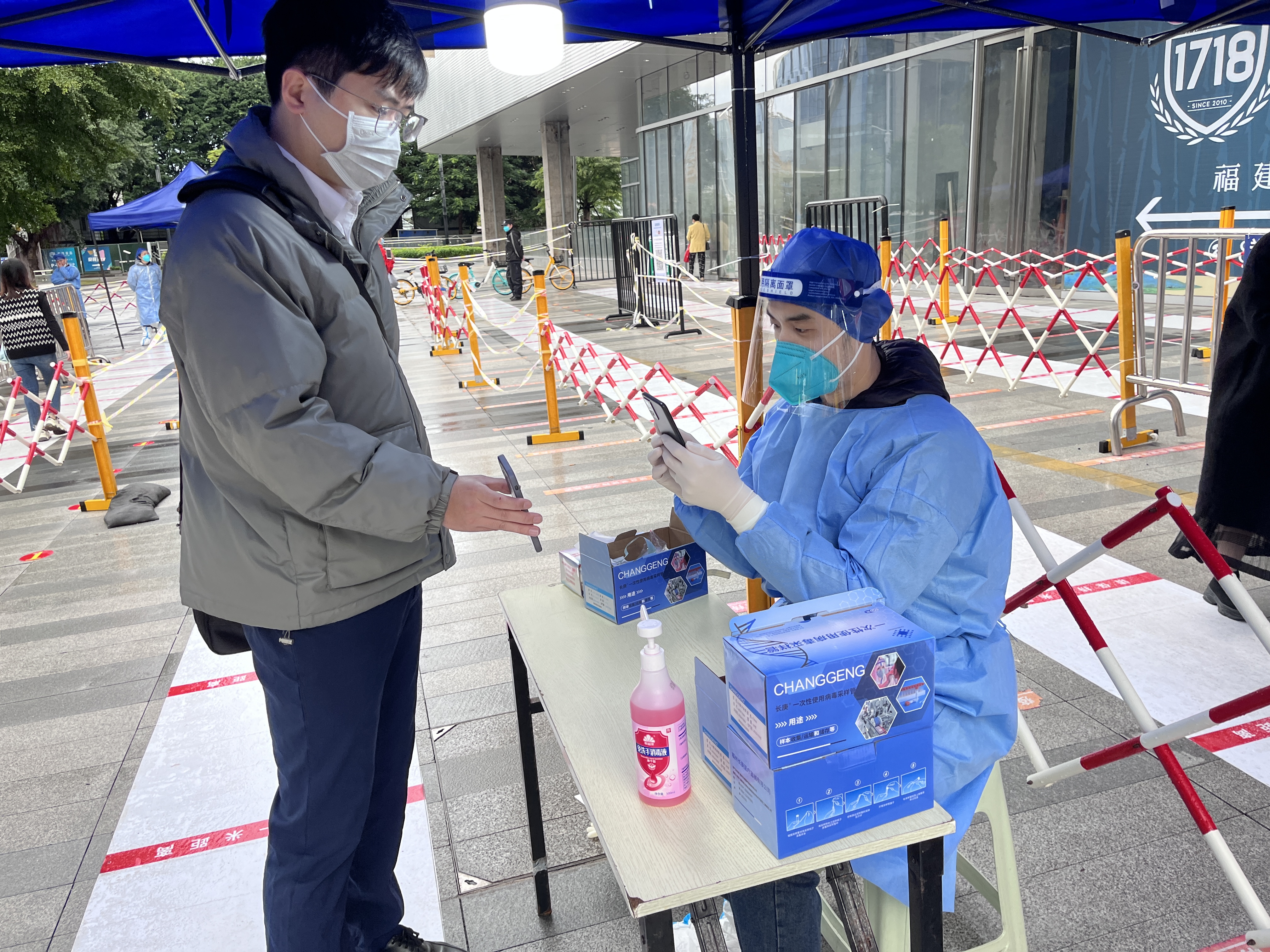 11月8日、11月16日、12月3日三天,國浩福州合伙人張雄偉,律師林希銘、伍禹琪、王梓鴻,律師助理余婕在蘇寧廣場A區積極參與核酸檢測信息登記工作。