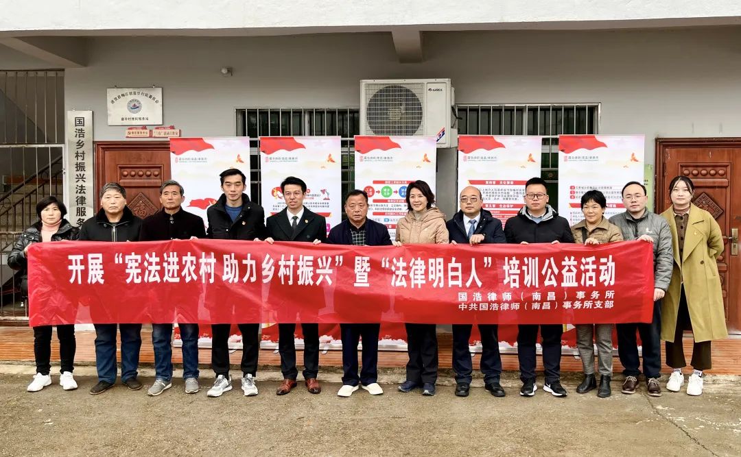 2022年12月4日是國家憲法日,也是我國現(xiàn)行憲法公布施行40周年。國浩南昌辦公室響應“憲法進農(nóng)村”號召及落實《“鄉(xiāng)村振興 法治同行”幫扶結(jié)對協(xié)議》,國浩執(zhí)行合伙人、國浩南昌主任馮帆,國浩南昌黨支部書記、合伙人蔡明,合伙人張代平等一行再赴南昌市進賢縣梅莊鎮(zhèn),與富華村開展了一場憲法宣傳和“法律明白人”培訓公益活動,并設立了“鄉(xiāng)村振興法律服務站”。