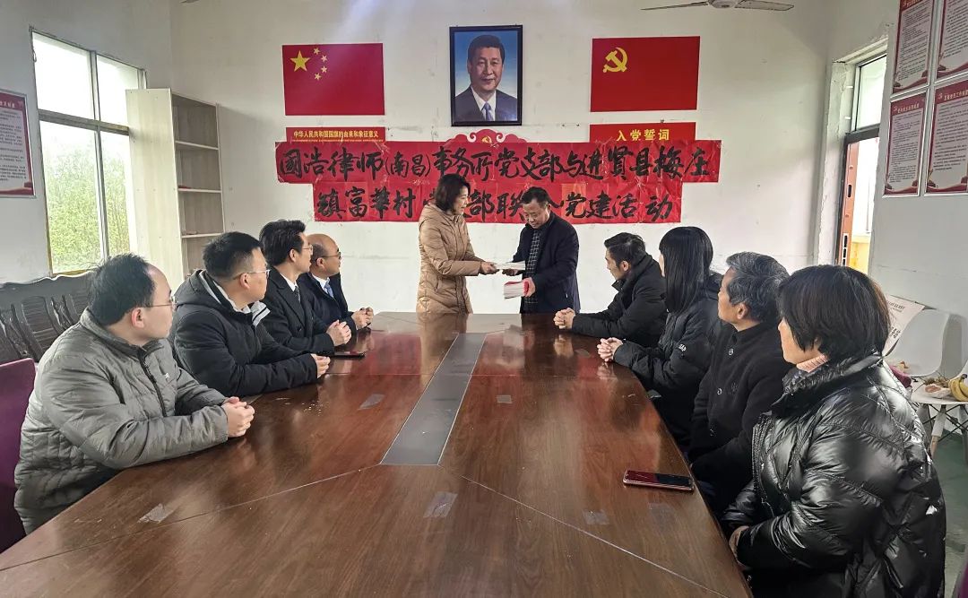 活動上,馮帆主任首先代表國浩南昌向富華村捐贈了《憲法》《鄉(xiāng)村振興促進法》等書籍,并簡要介紹了國家憲法宣傳周。馮帆主任表示,鄉(xiāng)村振興需落到實處,可利用農(nóng)村結(jié)構(gòu)的獨特性,加大農(nóng)業(yè)種植、鄉(xiāng)村旅游,促進農(nóng)業(yè)現(xiàn)代化發(fā)展。富華村支部書記胡新安等人對當前村莊及村民的相關情況、困惑作了詳細介紹。