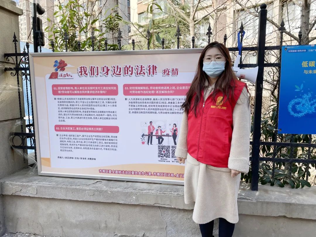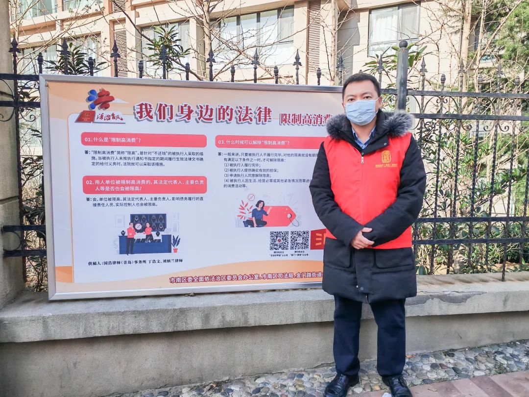 2022年9月起,在青島市市南區委全面依法治區委員會辦公室的組織下,國浩青島辦公室與市南區司法局、金門路街道辦事處聯合實施了“法治青風——我們身邊的法律”大型社區公益普法項目。在國浩青島合伙人趙永鵬等十余名青年律師的積極參與和努力下,已完成“市南區普法一條街”“市南區法治文化公園”等多個法治宣傳街區建設。