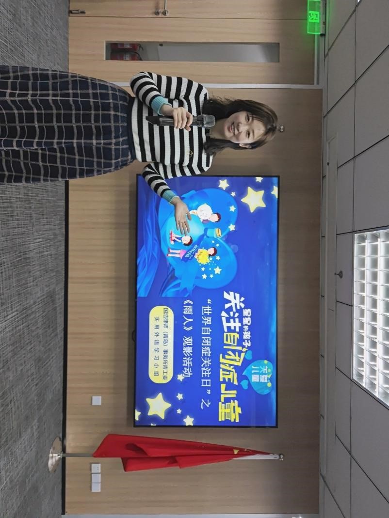 國浩青島青工委學管部部長、律師曹榮君在觀影前簡要介紹了自閉癥歷史和在臨床上的主要特征及其成因,并呼吁大家給星星的孩子多一點理解和關注,隨后大家對于自閉癥患者的內心世界進行了深度剖析和討論。