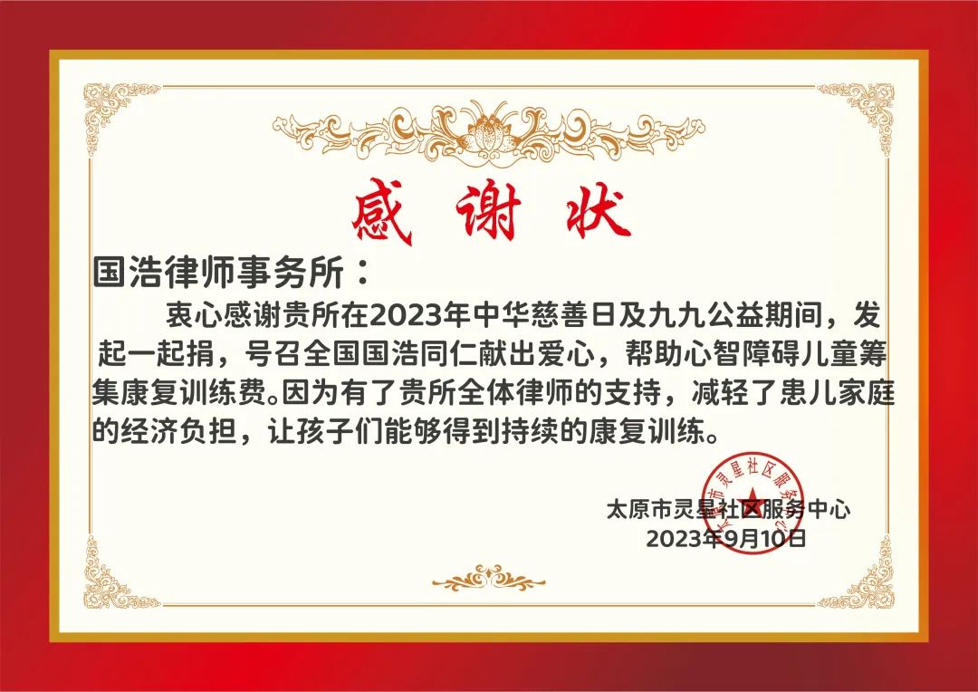 點滴力量,聚力成火。作為國內首家發布社會責任報告的律師事務所,國浩始終秉持初心,努力用法治之光照亮需要幫助的人們前行的路。未來,國浩律師也將積極踐行社會責任,持續為公益和法律事業貢獻力量。