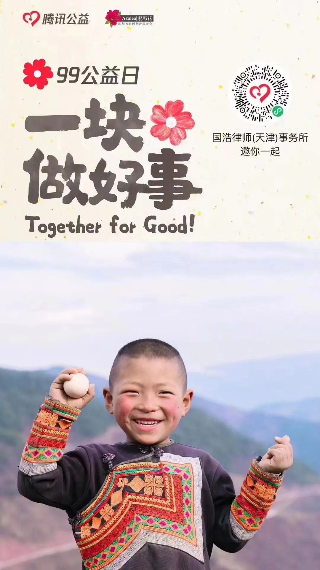 近日,騰訊公益全國第9個“99公益日”活動開展得如火如荼,9月7日至9日通過3億元配捐資金等促進公益形式創新和資源共享。國浩歷來重視踐行社會責任,積極參與本次“99公益日”活動,設置募捐通道,為國浩合作、參與幫扶的有關項目進行募捐。目前,通過國浩共為上海真愛夢想公益基金會、四川省索瑪慈善基金會、太原市靈星社區服務中心(通過深圳壹基金公益基金會項目)籌集逾25000元善款,用于公益研學旅行項目,以及為四川省涼山彝族自治州困境學生、特殊孩子籌集生活費及康復訓練費等。