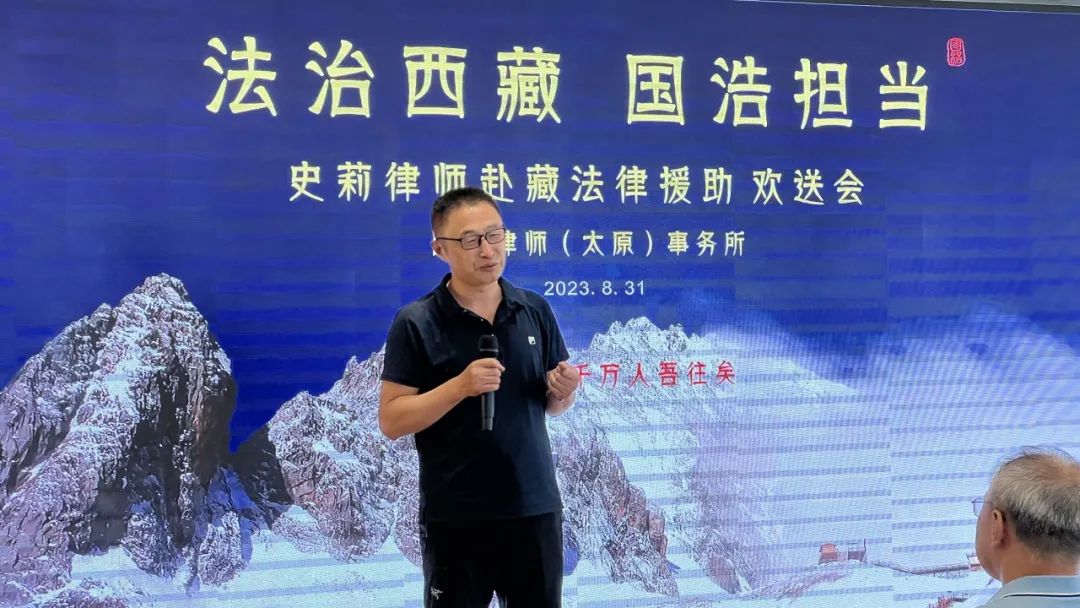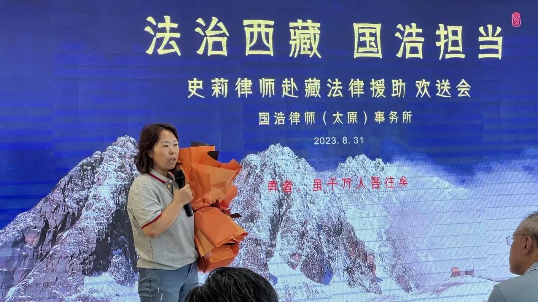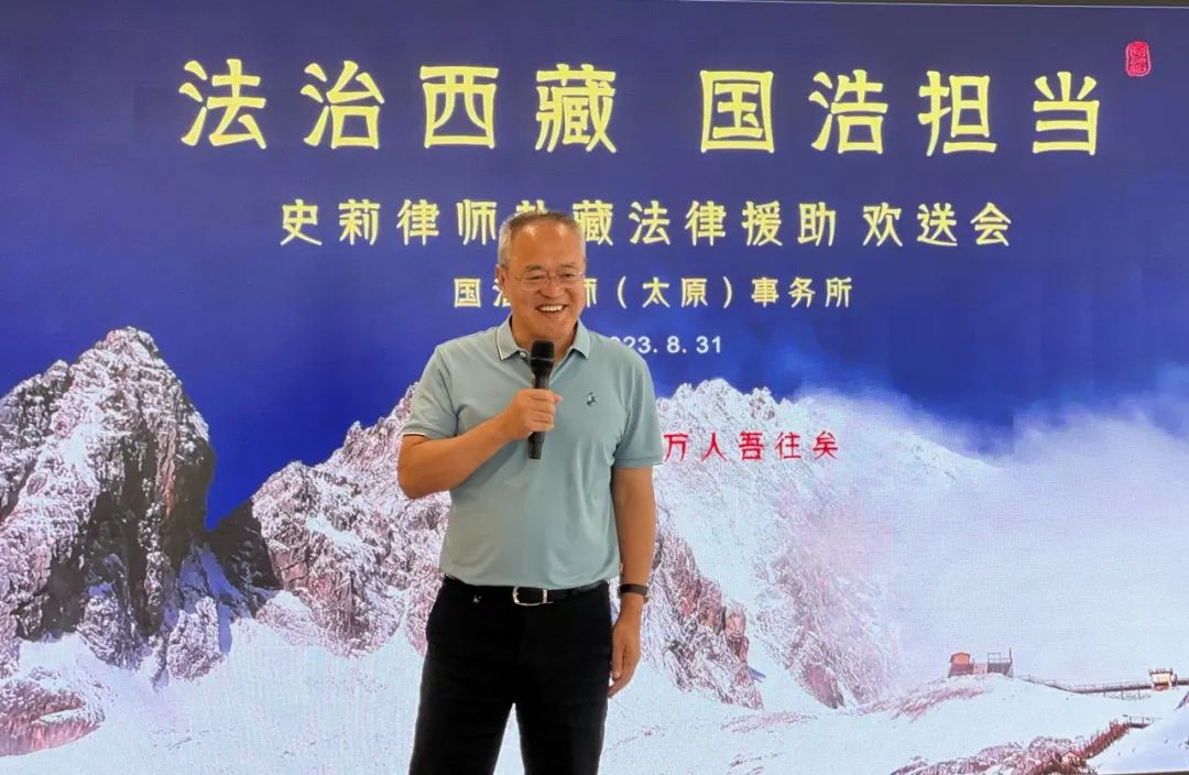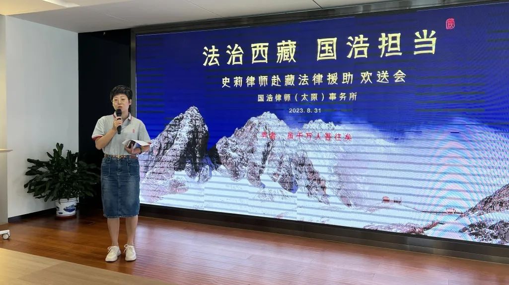 “律師援藏是推進(jìn)法治西藏建設(shè)中的一項(xiàng)光榮任務(wù),送法入藏是一項(xiàng)扶助貧弱、保障社會(huì)弱勢(shì)群體合法權(quán)益、發(fā)揮律師公益事業(yè)價(jià)值的崇高事業(yè)。”8月31日,在國(guó)浩太原辦公室為史莉律師舉辦的歡送會(huì)上,國(guó)浩太原管理合伙人、主任張蕾表示,國(guó)浩太原將全方位做好支持工作,包括照顧好律師家人,確保史莉律師在拉孜工作中沒有后顧之憂。