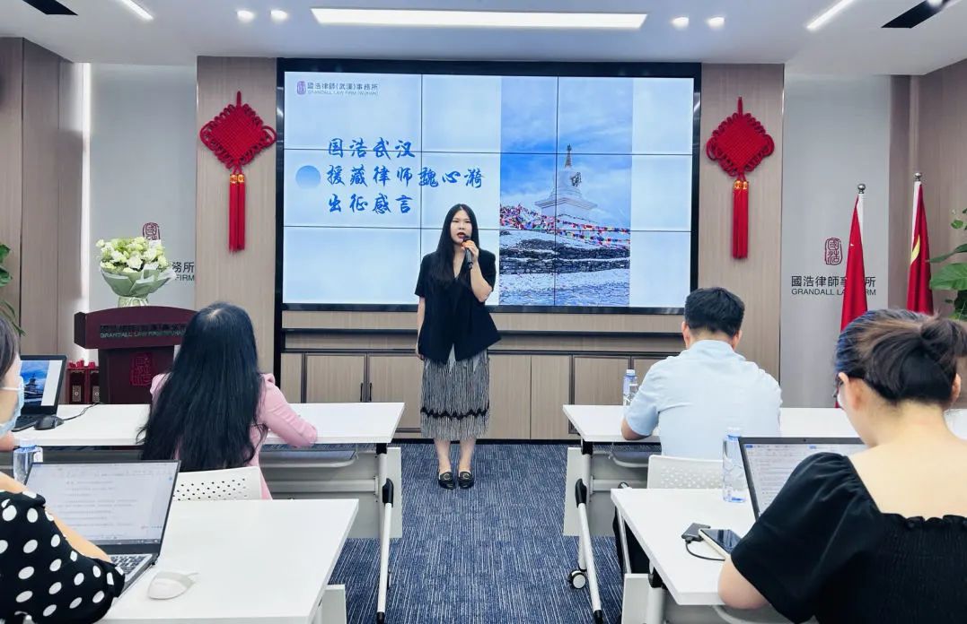 國(guó)浩武漢女律師工作委員會(huì)主任、合伙人梅芳在發(fā)言中感慨,魏心漪律師是國(guó)浩武漢年輕人的代表,她的堅(jiān)定和勇敢,將激勵(lì)國(guó)浩武漢青年律師參與更多更有意義的活動(dòng),也希望魏心漪律師勇毅篤行,用好本次良機(jī)為藏區(qū)群眾多辦實(shí)事。