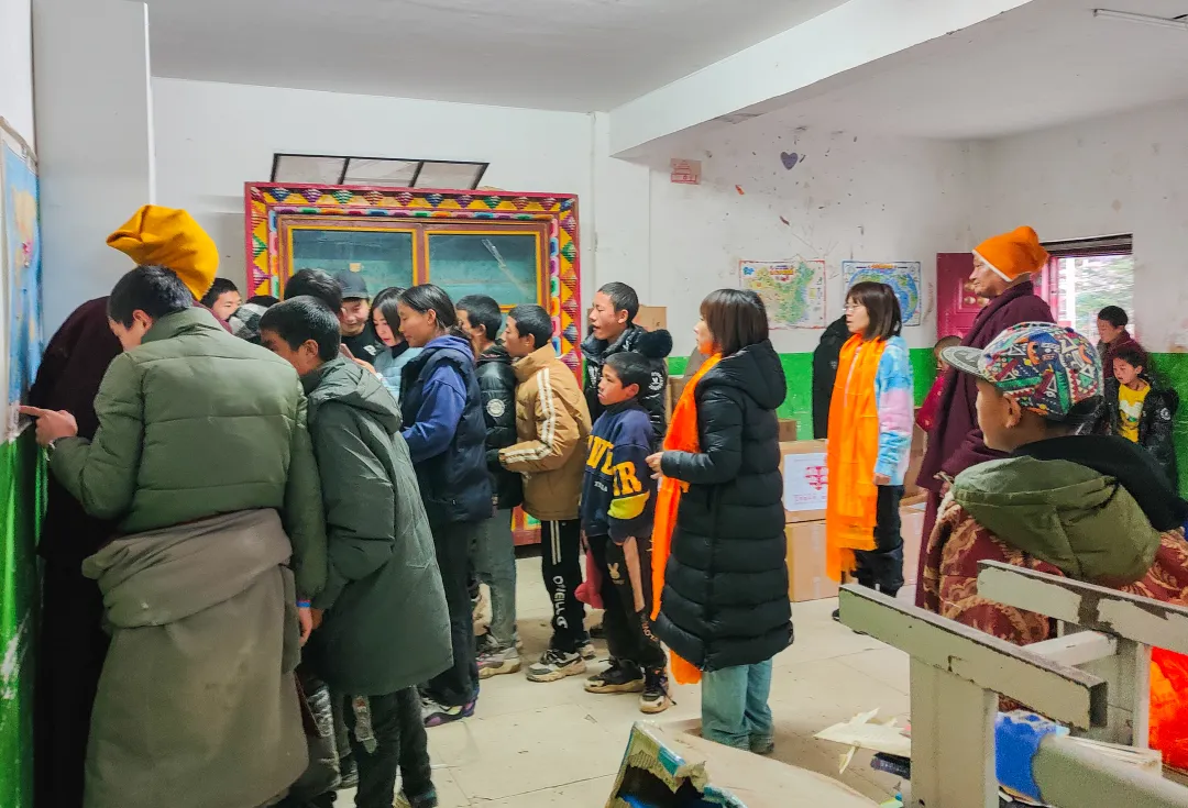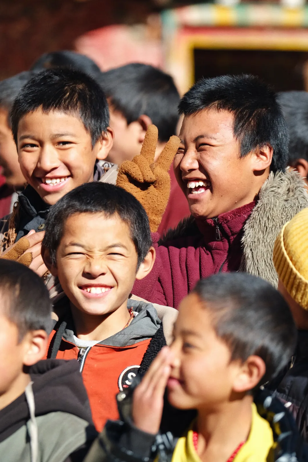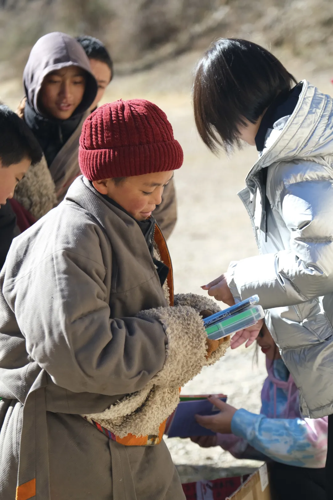 一下車,老師們立馬為我們送上了哈達。小朋友有些害羞,紛紛涌上來卻又跟我們隔著些距離。等我們一靠近,他們立馬擠過來跟我們挨個握手、擊掌,久久不肯散去。