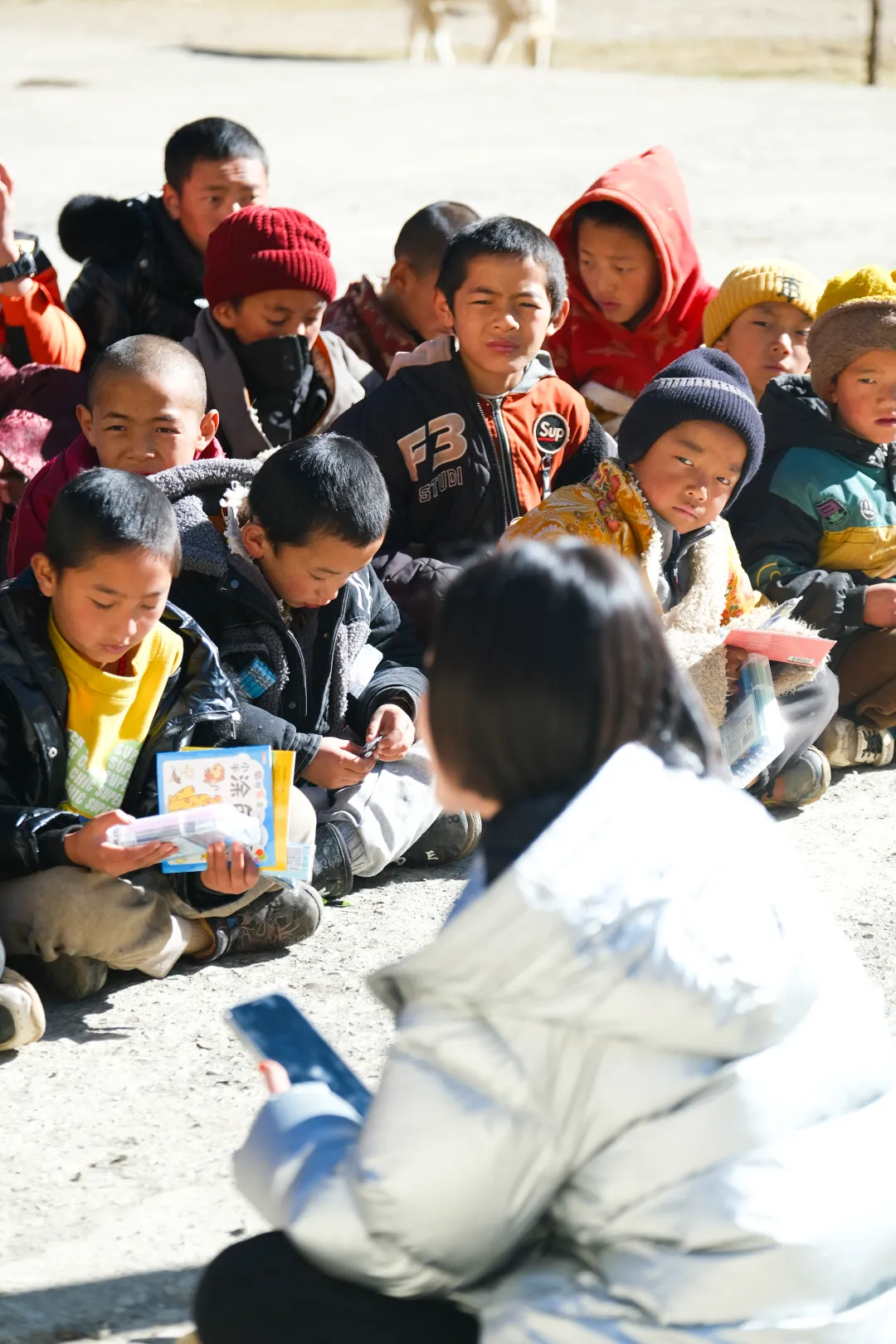 在隨后的捐贈儀式中,鄭立秋律師向學校老師授牌并移交了圖書名冊,方便老師后續管理圖書。儀式完畢,大家在冬日的暖陽中席地而坐,在黑白色大小牦牛自由穿行的小操場里,鄭立秋律師以《中華人民共和國未成年人保護法》為內容,給小朋友們上了一堂精彩的知識競答普法課。小朋友們雖小,對學習卻非常認真,仔細聽講、踴躍回答。普法課在一片歡樂輕松的氛圍中漸漸接近尾聲。
