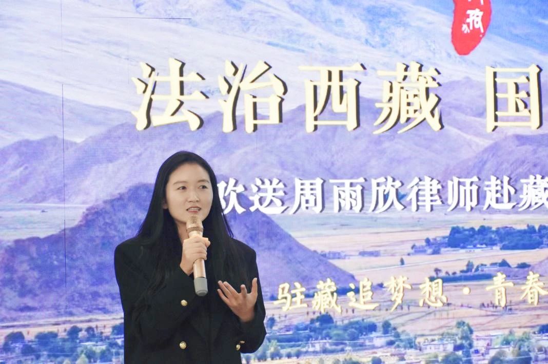 當天,國浩第二、三批駐藏律師、國浩南京律師徐文婕也來到現(xiàn)場,從個人,所在辦公室和國浩三個角度分享了“法治精神 國浩擔當”的解讀,她祝福援藏律師中最年輕的周雨欣律師在西藏身體健康,工作順利,扎西德勒,一直保有理想與熱忱。