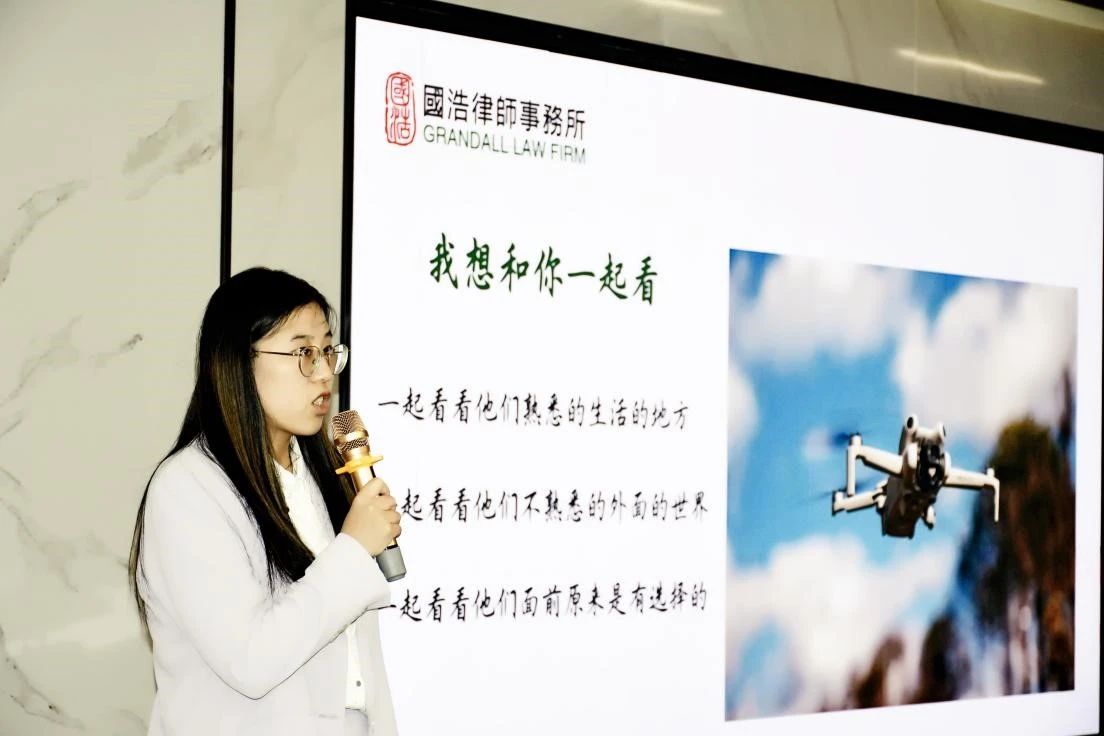 周雨欣律師分享了她的成長歷程和對駐藏工作的期待。她表示,工作對她而言不僅僅是日復一日的重復,更是一種為他人服務(wù)的使命。她希望通過這次駐藏之行,能讓更多人少吃一些不必要的苦。滿懷夢想的她希望做一架拉孜的無人機,去看看當?shù)氐纳睿矌М數(shù)夭孛袢タ纯赐饷娴氖澜纭V苡晷缆蓭煂⒗脴I(yè)余時間去當?shù)氐闹行W校支教,為當?shù)氐慕逃聵I(yè)貢獻一份力量,她希望不負這段寶貴的法援時光,用這次的經(jīng)歷為青春鑲嵌一枚閃亮的徽章,帶著“法治西藏,國浩擔當”的國浩駐藏精神,為西藏的法治事業(yè)貢獻自己的青春力量。