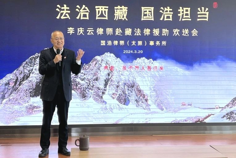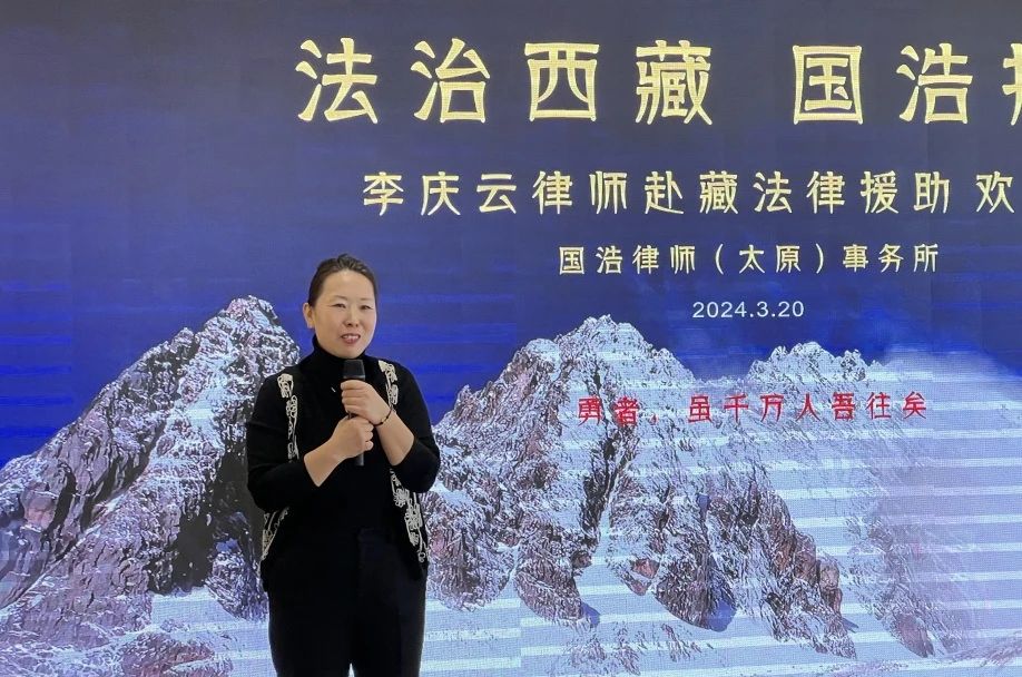 李慶云律師首先感謝了國浩大家庭對她的信任和認可,感謝國浩太原給予了她平臺和機會能夠?qū)崿F(xiàn)早就植根在心中的援藏之夢。她強調(diào),能夠作為援藏律師赴西藏工作她感到十分光榮。熱愛阻擋萬難,李慶云律師表示她一定會盡快適應(yīng)拉孜地區(qū)的工作、生活環(huán)境,全力以赴,帶著堅定的信念為西藏法治建設(shè)做一些實實在在的事情,不辱使命,圓滿完成這次援藏任務(wù),為偉大祖國的法治建設(shè)貢獻自己的力量。