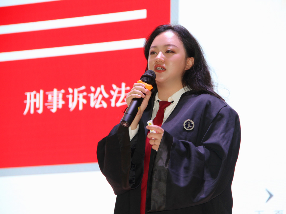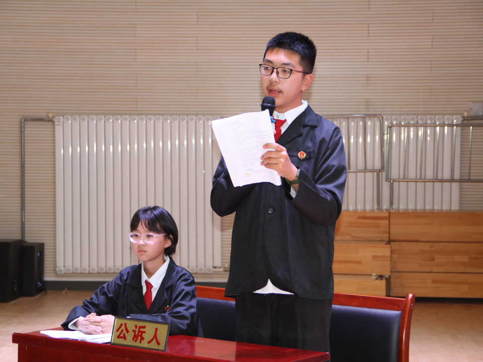 在高楊律師對案例、審判規則等進行簡單講解后,“現在開庭!”伴隨著清脆的法槌聲響,一場模擬“故意傷害案”的庭審活動正式開始。