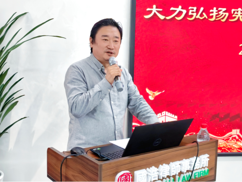 國浩大連合伙人鄭東東從憲法發(fā)展的歷史中,感受到了無數(shù)法律人對(duì)治理國家、治理社會(huì)的科學(xué)道路的不斷探索,深刻理解了傳播憲法精神、提高理論素養(yǎng)的重要意義,并強(qiáng)調(diào)法律人對(duì)憲法更要有敬畏之心,法律人對(duì)憲法的態(tài)度決定了其對(duì)工作和人生發(fā)展的態(tài)度。