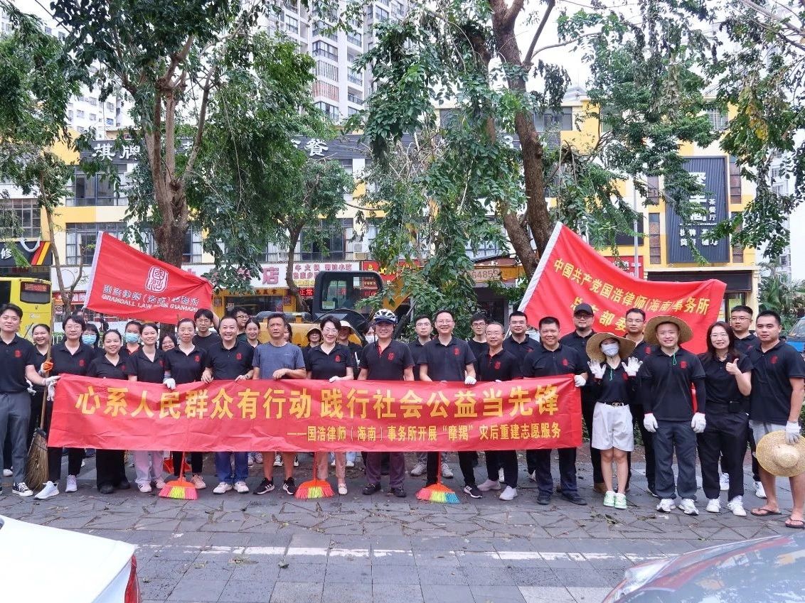 臺風“摩羯”侵襲海南,造成了嚴重的破壞。狂風暴雨過后,家園滿目瘡痍,重建工作迫在眉睫。危難時刻,國浩海南黨總支積極作為,組織國浩海南律師成立志愿者服務(wù)團,自愿投身到災后重建工作中,參與轄區(qū)道路清理、為受災群眾提供法律咨詢與援助、捐贈愛心物資等系列行動,充分展現(xiàn)了國浩海南律師的社會責任感和擔當精神。