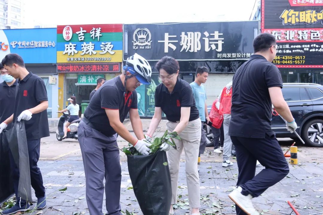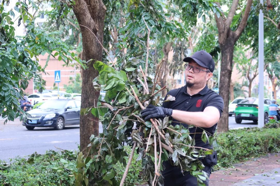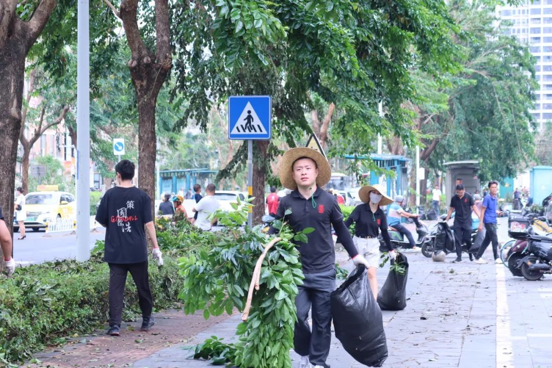 臺風過后,大量樹木損毀造成城市道路不暢,情況緊急。9月10日上午,國浩海南黨總支書記王澤位,國浩海南管理合伙人王龍奎、姜丹帶領(lǐng)33名國浩海南志愿服務(wù)團成員,主動聯(lián)系海口市金貿(mào)街道世貿(mào)社區(qū),有序開展道路清障工作。大家不畏艱難,積極參與道路清理、垃圾搬運等工作,齊心協(xié)力,使濱貿(mào)路沿線恢復了往日的整潔和通暢。