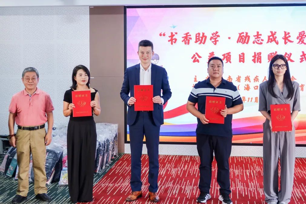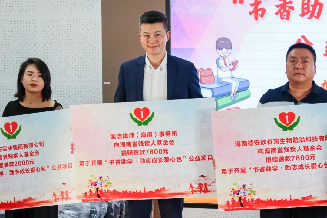 2024年11月8日,由海南省殘疾人基金會主辦的“書香助學·勵志成長愛心包”公益項目捐贈儀式在海南(??冢┨厥饨逃龑W校舉行。國浩海南合伙人黃輝代表國浩海南參加捐贈儀式,向殘障兒童獻愛心,捐贈“愛心書包”20套。
