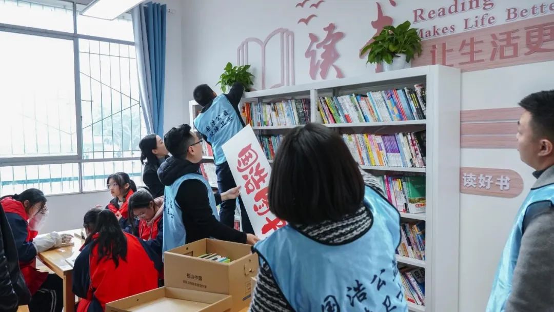 2024年12月18日,“國浩圖書角”第三期公益項目啟動,國浩成都公益委員會一行7人來到位于自貢市大安區牛佛鎮的牛佛中學,向該校捐贈了各類圖書千余冊和書架,并將捐贈圖書整齊擺放在“國浩讀書角”,為全校師生營造了一個舒適宜人的閱讀空間。