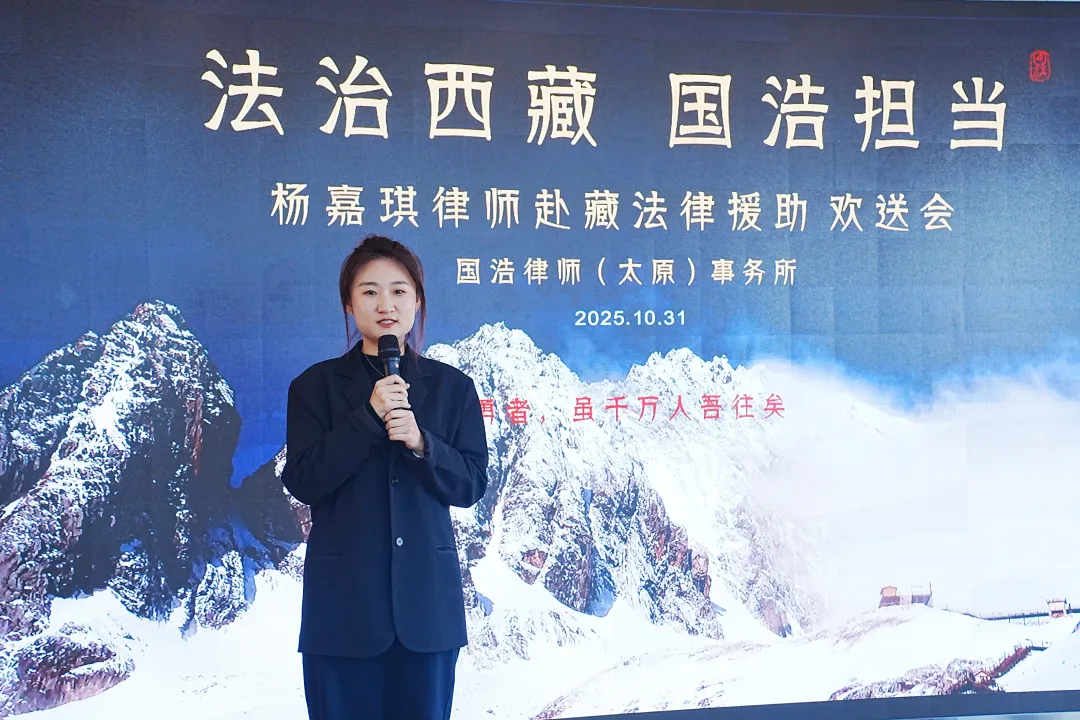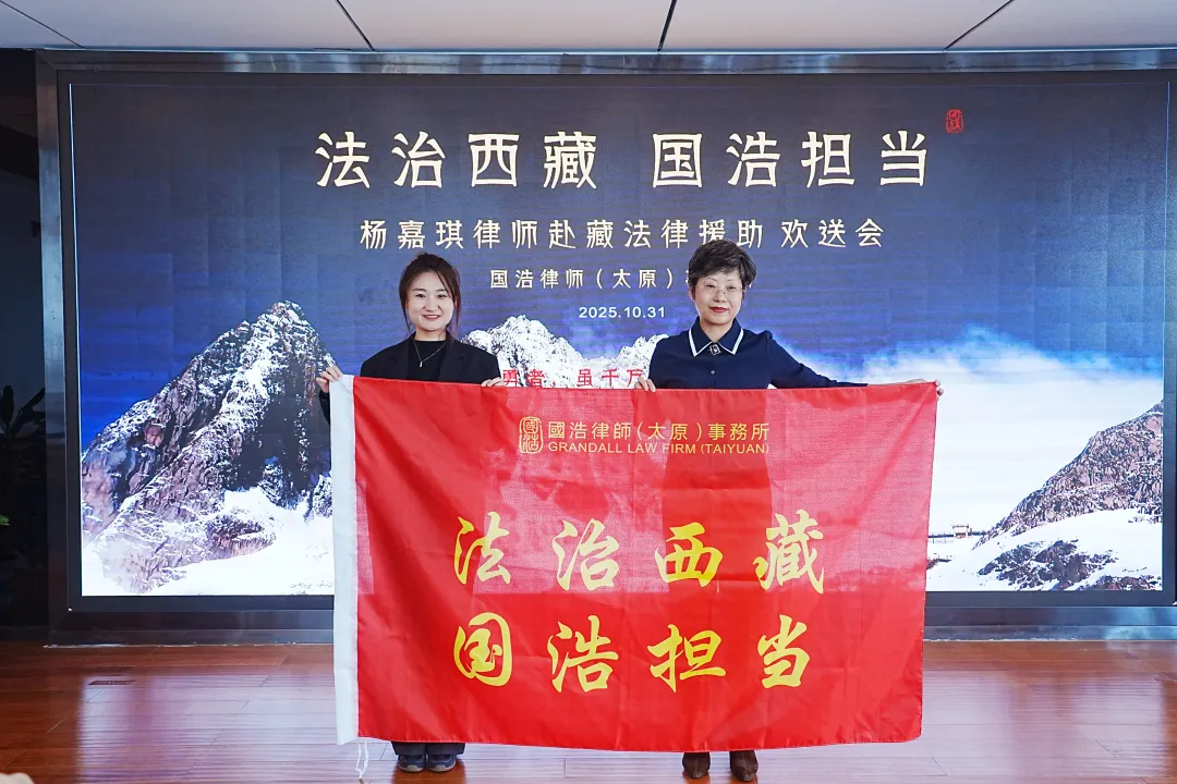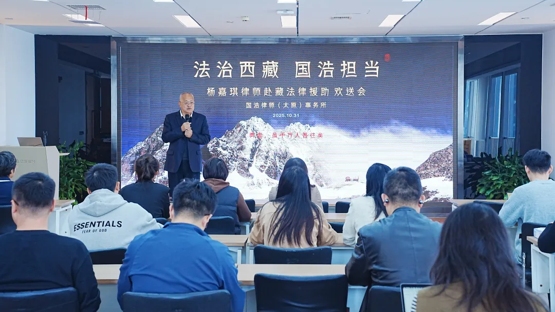 為積極響應國家支援邊疆地區法治建設的號召,國浩太原律師楊嘉琪主動請纓,成功入選第七批國浩駐藏律師名單,即將肩負使命奔赴西藏開展援藏法律服務工作。為向楊嘉琪律師無私奉獻的精神表達敬意,并給予她最堅實的支持,2025年10月31日下午,國浩太原的同事們齊聚一堂,為即將踏上征程的楊嘉琪律師舉行了援藏歡送會。