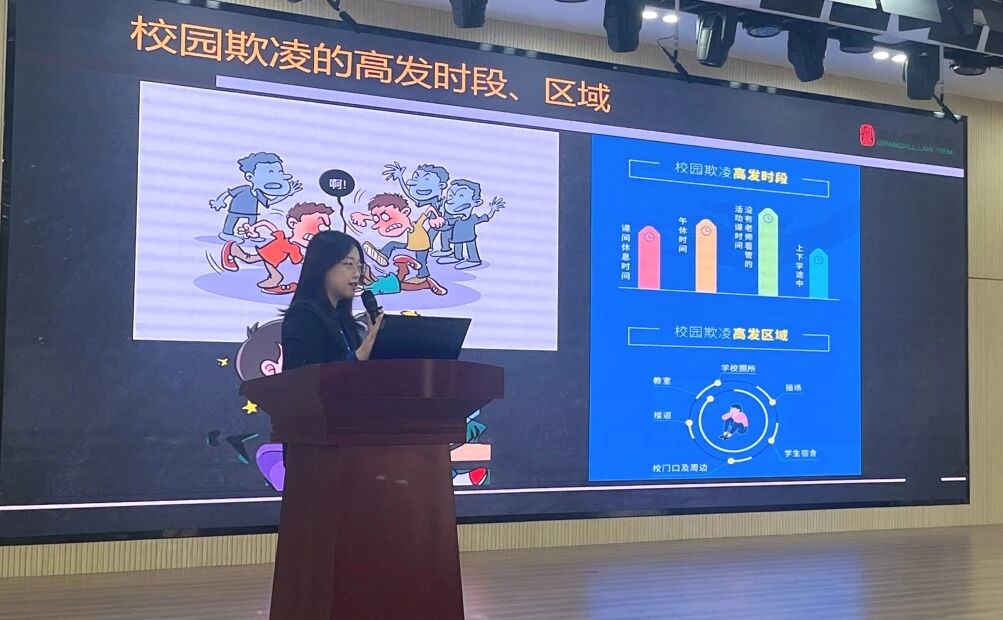 課堂上,程佳佳律師通過“案例辨析”“權(quán)利問答”等環(huán)節(jié),引導(dǎo)學(xué)生區(qū)分“同學(xué)間的打鬧”與“校園欺凌”,了解欺凌的法律邊界。隨后,她系統(tǒng)講解了在遭遇欺凌或網(wǎng)暴時的維權(quán)途徑,包括向?qū)W校反映、尋求家長幫助或報警處理,并倡導(dǎo)“互助友愛”的校園文化,鼓勵大家成為“反對欺凌的小衛(wèi)士”。