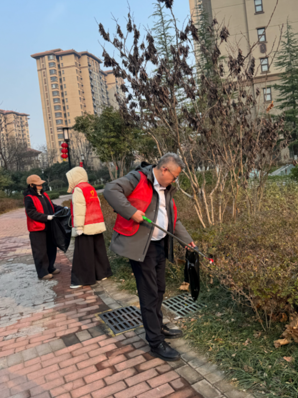 活動中,黨員志愿者們手持清潔工具,對社區公共道路、綠化帶、樓道角落等區域進行了細致清理。大家認真撿拾紙屑、煙頭、包裝廢棄物等垃圾,不放過任何衛生死角。身著紅馬甲的忙碌身影,成為冬日社區里一道溫暖的風景,吸引了居民們的關注與點贊。