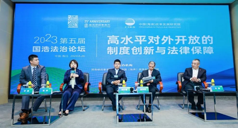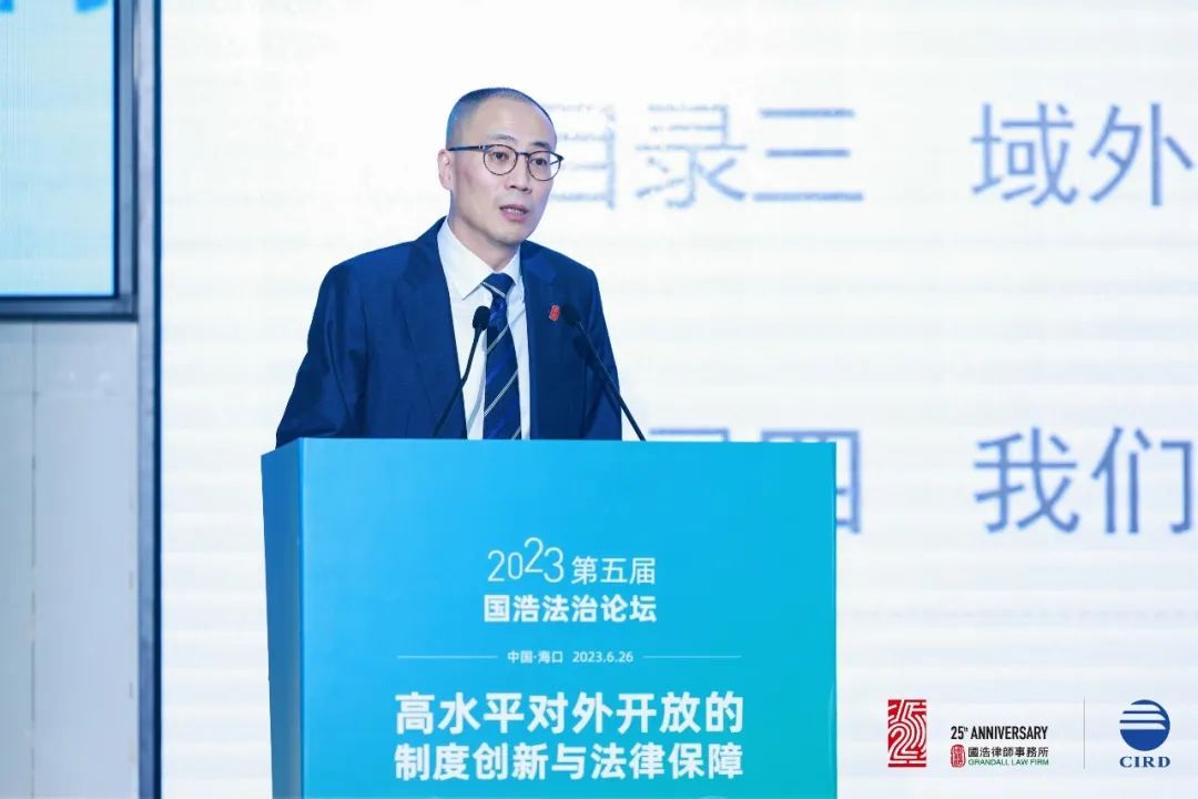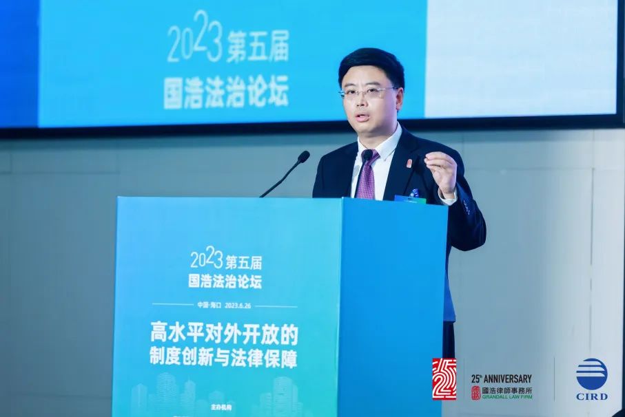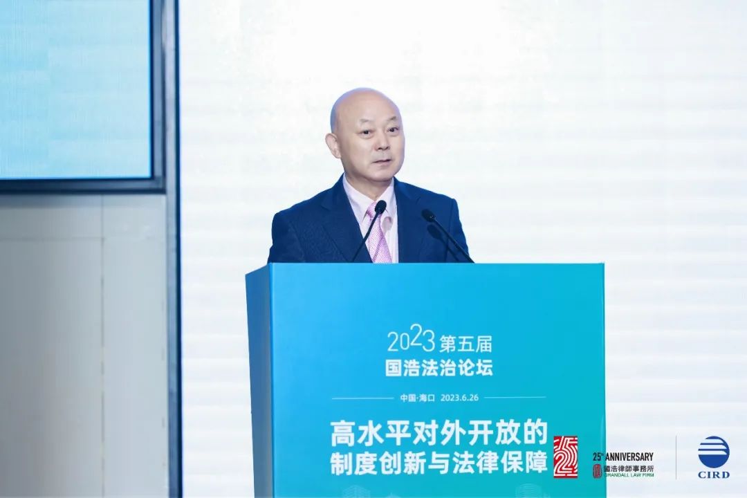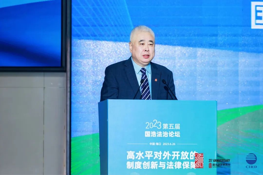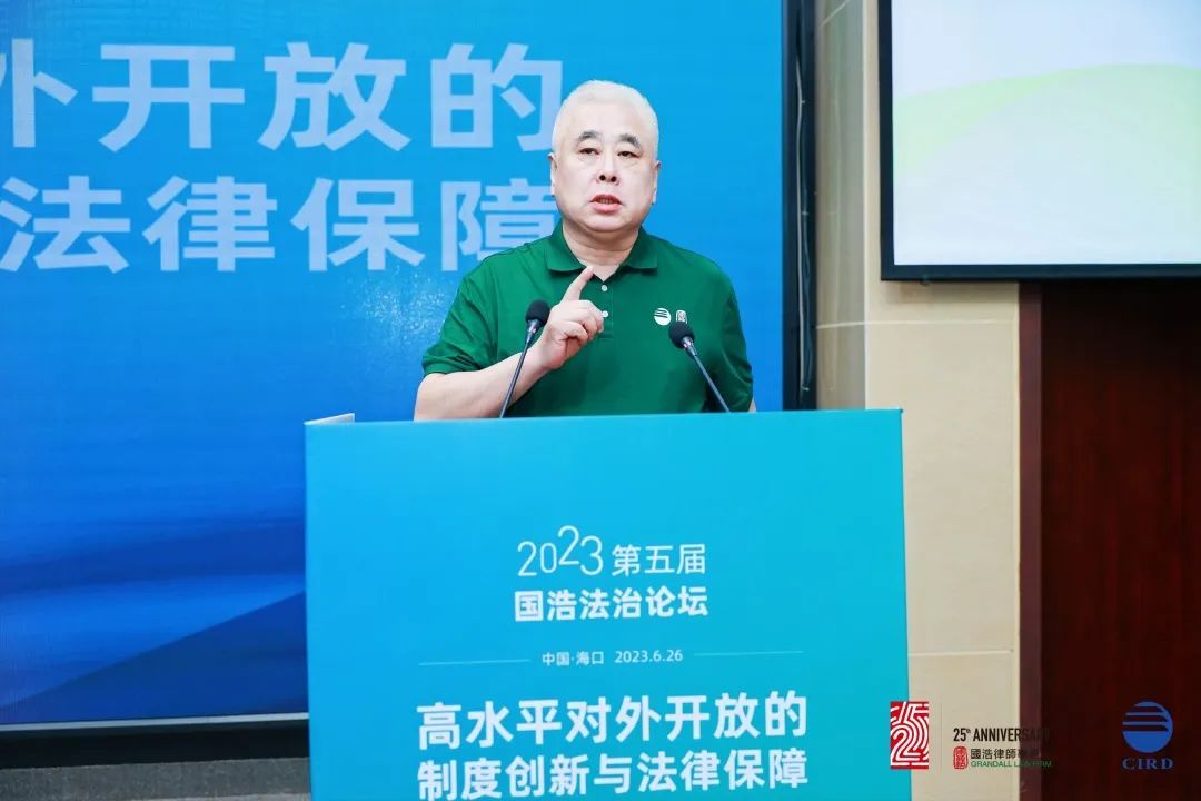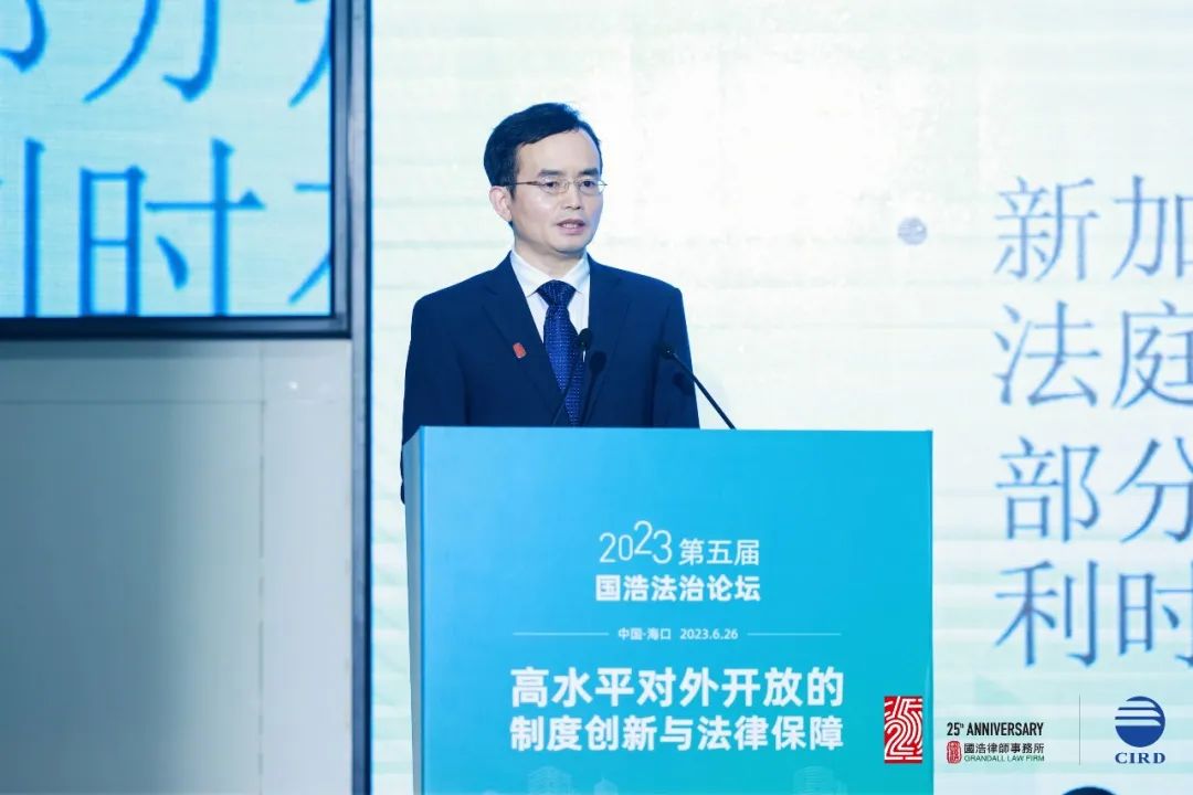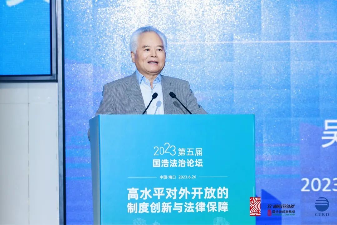2023年6月26日,由國(guó)浩律師事務(wù)所中國(guó)(海南)改革發(fā)展研究院共同主辦以“高水平對(duì)外開(kāi)放的制度創(chuàng)新與法律保障”為主題的“第五屆國(guó)浩法治論壇”在海口成功舉辦。260余名國(guó)內(nèi)著名法學(xué)家、經(jīng)濟(jì)學(xué)家、知名律師、媒體代表等高朋云集,聚焦當(dāng)前高水平對(duì)外開(kāi)放中的法治熱點(diǎn)和難點(diǎn),探討如何依法服務(wù)高水平對(duì)外開(kāi)放、推動(dòng)加快建設(shè)更高水平開(kāi)放型經(jīng)濟(jì)新體制,增強(qiáng)有效應(yīng)對(duì)挑戰(zhàn)、防范風(fēng)險(xiǎn)的能力,以助力構(gòu)建新發(fā)展格局,為擴(kuò)大高水平對(duì)外開(kāi)放提供法治保障。
