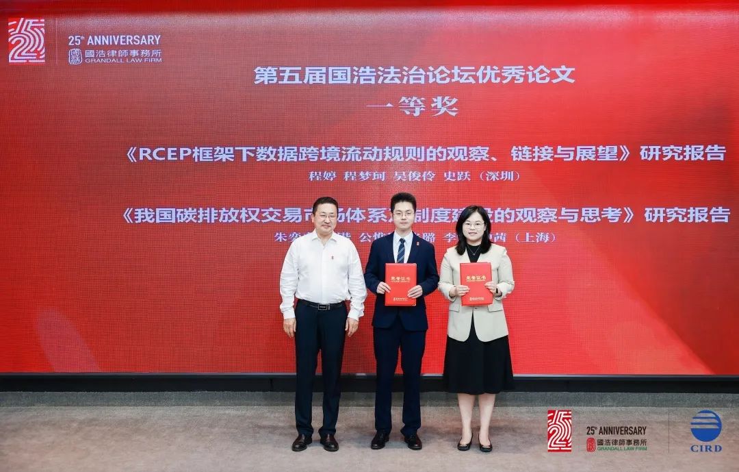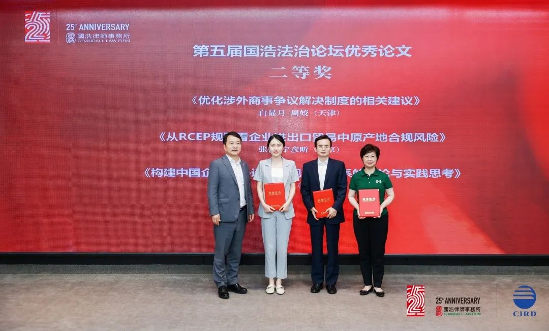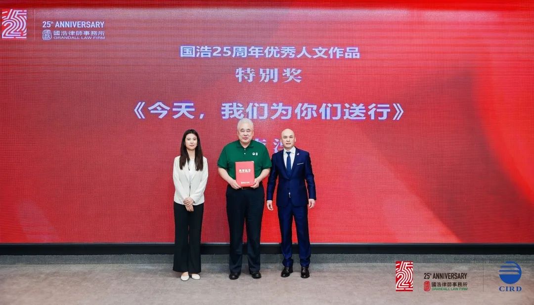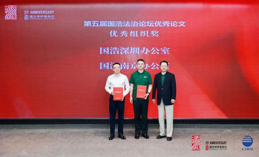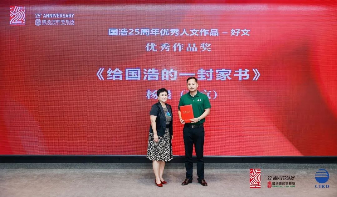 廿五風(fēng)華,星耀潮頭。論壇閉幕儀式上,第五屆國(guó)浩法治論壇優(yōu)秀論文和國(guó)浩25周年優(yōu)秀人文作品獲獎(jiǎng)名單揭曉。在國(guó)浩發(fā)展研究院執(zhí)行院長(zhǎng)尤越的主持下,獲獎(jiǎng)作者們逐一上臺(tái)領(lǐng)獎(jiǎng)。