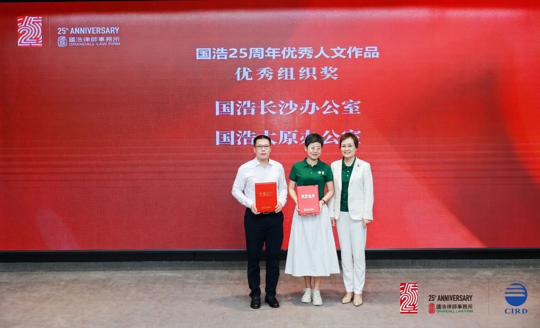 同時(shí)也為此次積極組織投稿的國(guó)浩南京、深圳辦公室頒發(fā)了優(yōu)秀組織獎(jiǎng)