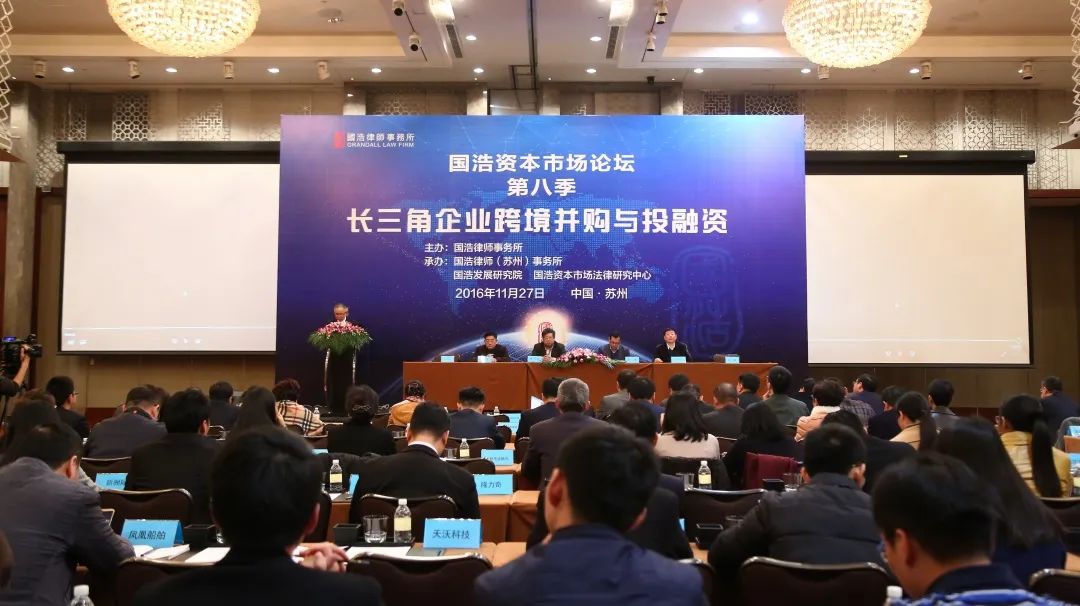 2016年11月27日,由國浩律師事務所主辦,國浩律師(蘇州)事務所、國浩發展研究院、國浩資本市場法律研究中心承辦的“國浩資本市場論壇·第八季:長三角企業跨境并購與投融資”在蘇州舉行。
