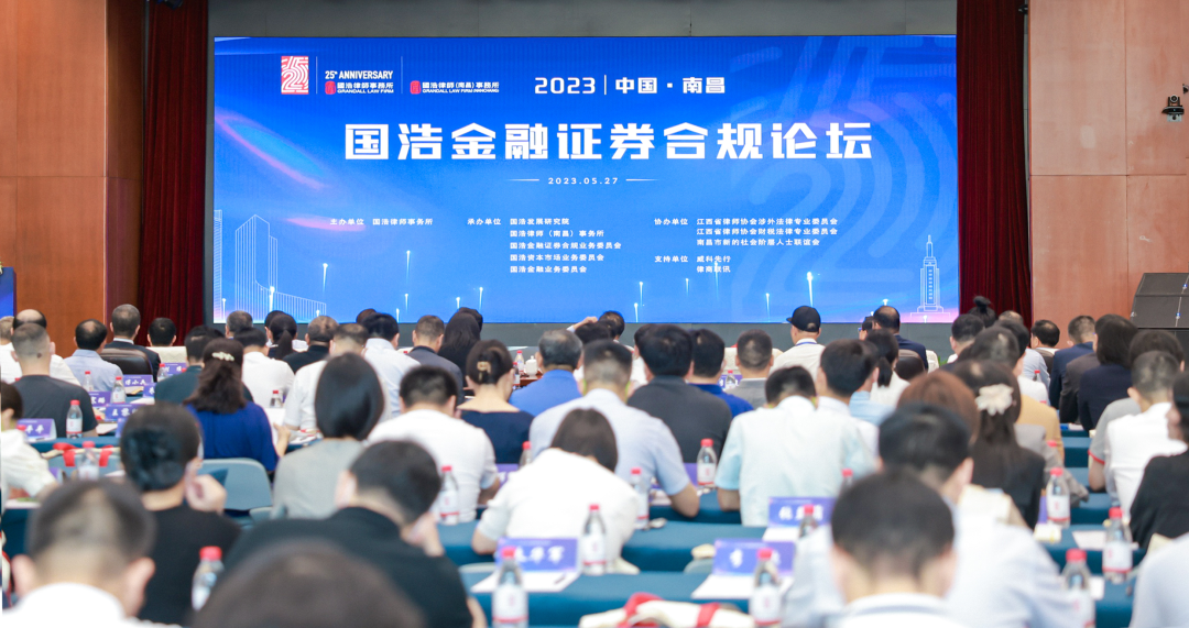 2023年5月27日,國浩金融證券合規論壇在南昌召開,該論壇由國浩律師事務所主辦,國浩發展研究院、國浩金融證券合規法律研究中心、國浩資本市場法律研究中心、國浩金融法律研究中心、國浩律師(南昌)事務所承辦。