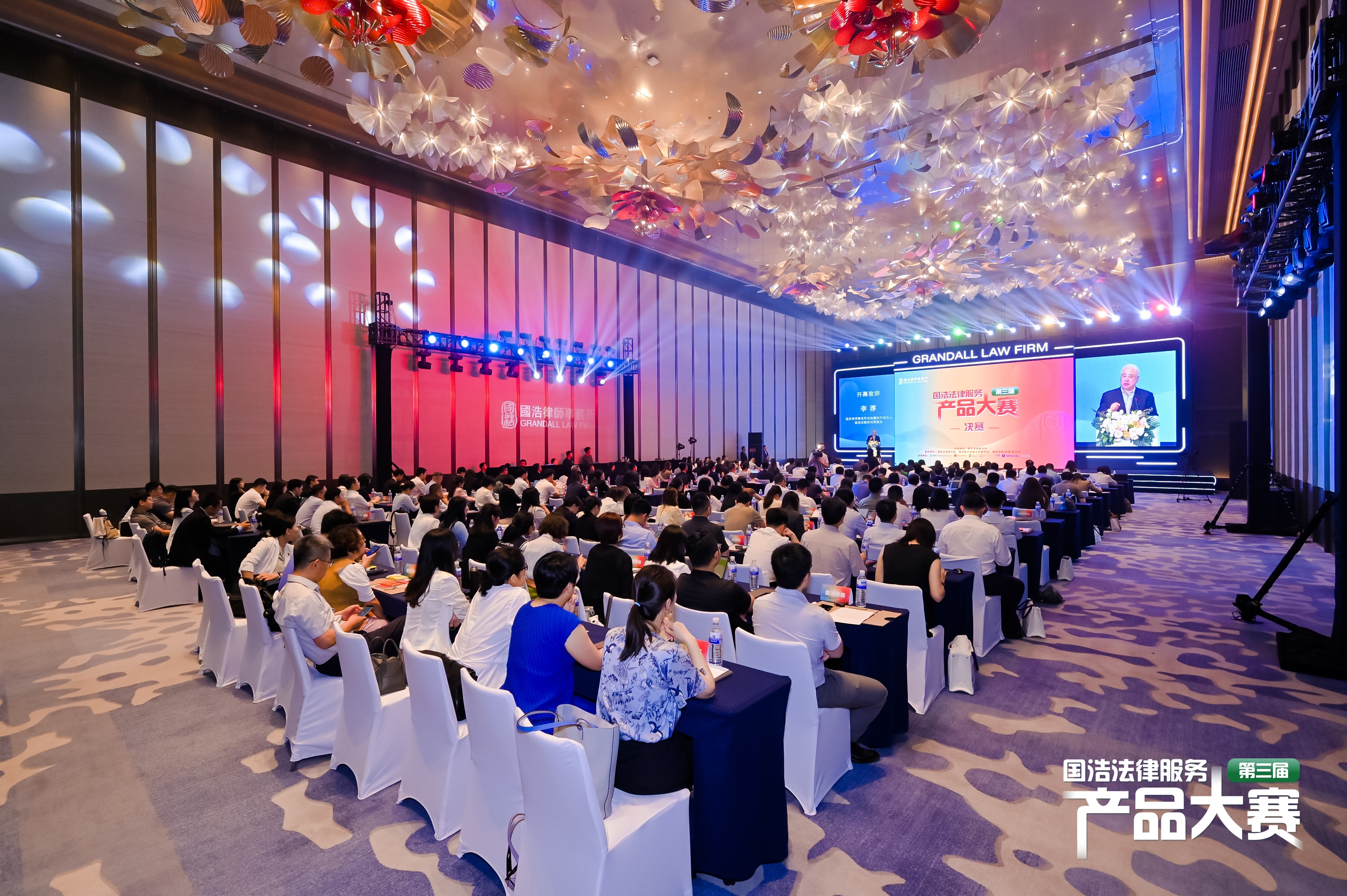 國浩律師事務所首席執行合伙人呂紅兵趕至頒獎晚宴,代表主辦方慶祝本次賽事圓滿結束。他祝賀所有獲獎者,“春風得意馬蹄疾”“映日荷花別樣紅”;祝福所有參與者,“一花獨放不是春”“百花盛開香滿園”;感謝各位評委,“一針見血真功夫,一語中的善啟發”;感恩國浩客戶,“問渠哪得清如許 ,為有源頭活水來”,客戶日益增長的法律服務需求正是國浩律師創新創造的不竭動力。呂紅兵律師表示,期待國浩的法律服務“產品”成為“商品”、做成“精品”、打造“爆品”,不光要“紙上談兵”,更要“橫掃天下”,不光領取賽場上的“獎杯”,更要贏得當事人的“口碑”。產品大賽持續辦,常賽常新,基業長青!