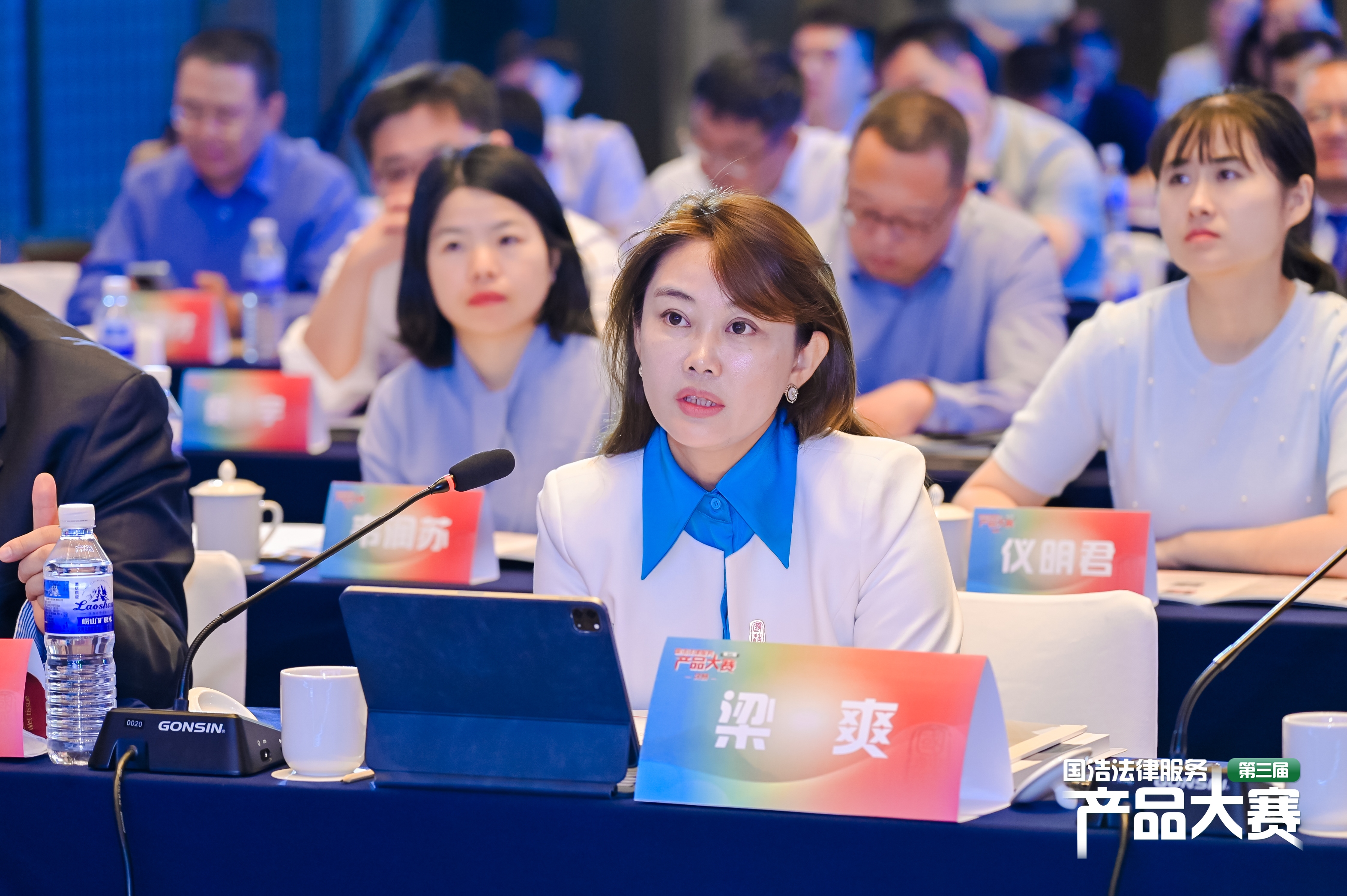 碧波蕩漾,群英畢至。青島市司法局黨委委員、政治部主任辛琦,國浩律師事務所創始暨執行合伙人、國浩發展研究院院長李淳蒞臨比賽現場并致開幕辭。青島仲裁辦黨組成員、副主任常江,青島市商務局總經濟師、青島貿易發展服務中心主任劉婷,青島市市南區司法局黨組書記、局長夏青,青島市貿促會法律處(國際商會秘書處)處長王春立,青島仲裁辦仲裁發展處處長張本文等親臨現場觀賽交流。國浩律師事務所執行合伙人車捷、馮帆、楊娟、李強、劉小進、梁爽、羅崢、柳向陽、張日輝,國浩律師事務所監事宋玲玲、吳爽,國浩律師事務所青工委副主任劉慶以及國浩多地辦公室管委會代表、青工委代表,部分初賽、復賽參賽代表共同參會,為比賽助陣。