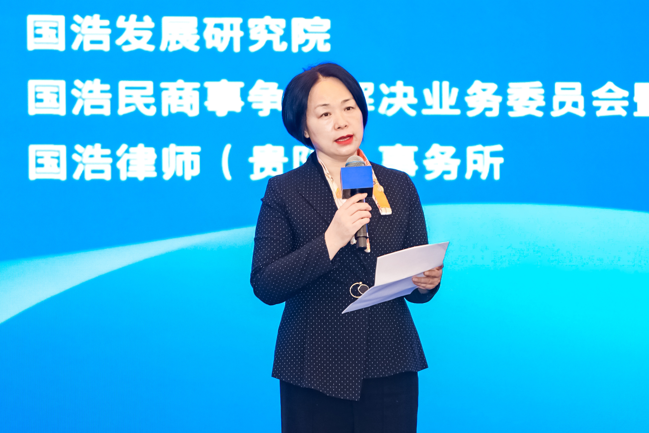 白敏律師發表了熱情洋溢的致辭。她表示,當下我們正在邁過法治建設的“莽莽黔山”、越過民商事爭議解決的“巍巍雄關”。本次論壇既是國浩律師事務所發展歷程中的一件喜事,也是貴州律師事業高質量發展中的一件盛事。糾紛解決機制是國家治理體系的重要組成部分,不僅關乎社會穩定和公平正義,還直接影響到國家治理效能的提升。要解決糾紛,就要深刻認識經濟運行的客觀規律,了解黨的二十屆三中全會后市場經濟的發展和變化;要解決民商事爭議解決糾紛,就要充分了解新《公司法》的生效對市場主體產生的影響。她期待通過與會嘉賓的深度分享和律師同仁的分享交流,能夠為爭議解決找到更多切實可行的路徑。近些年,貴州省律師行業主動發揮法律職能,為經濟高質量發展與社會和諧穩定提供了有力法治保障,白敏律師歡迎更多國內知名律所到貴州市場深耕,給貴州律師提供學習交流的機會,為行業發展注入新活力。“貴州山是獨一無二的山,橋是連接千山的橋,世界橋梁看中國,中國橋梁看貴州。”她希望本次論壇能成為搭接貴州律師與外界的橋梁,為貴州律師行業高質量發展添磚加瓦!