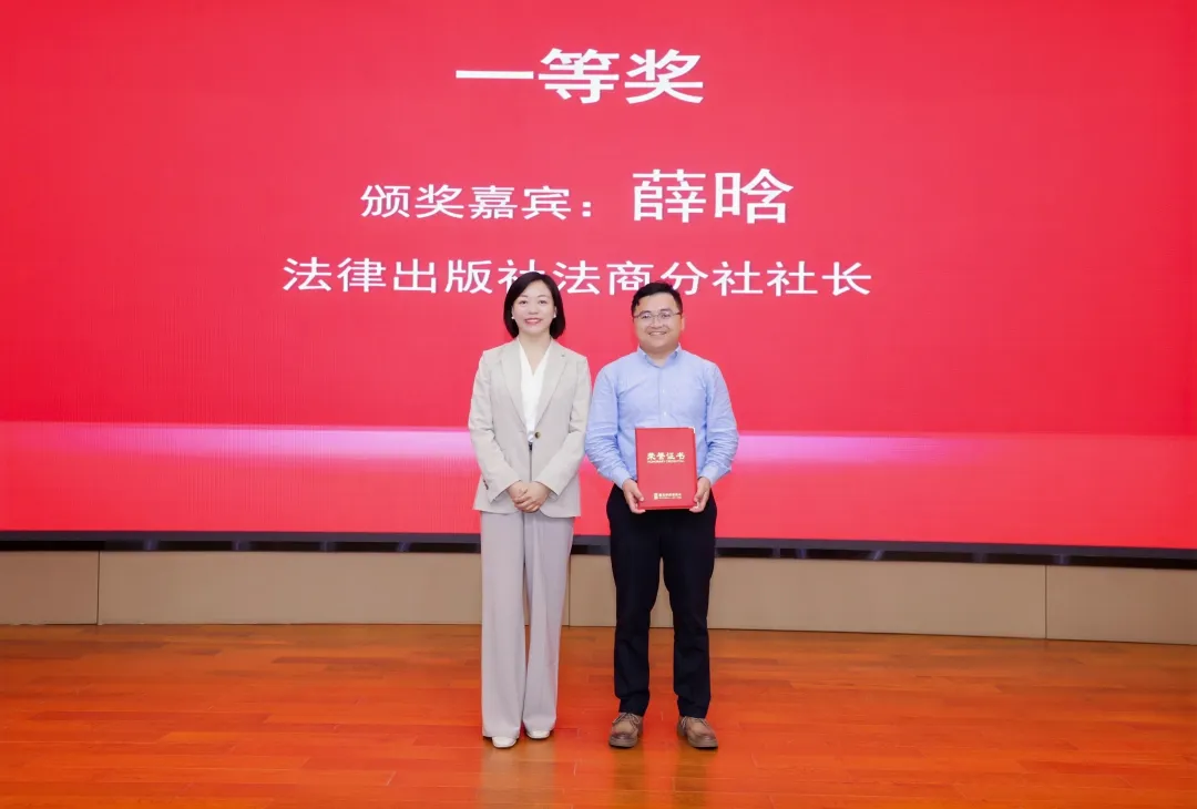 陳江剛律師的《形式抑或實質:重整計劃執行完畢標準之爭——基于2024年裁定批準的11家上市公司重整案件樣本分析》榮獲一等獎,由法律出版法商分社社長薛晗為其頒獎。