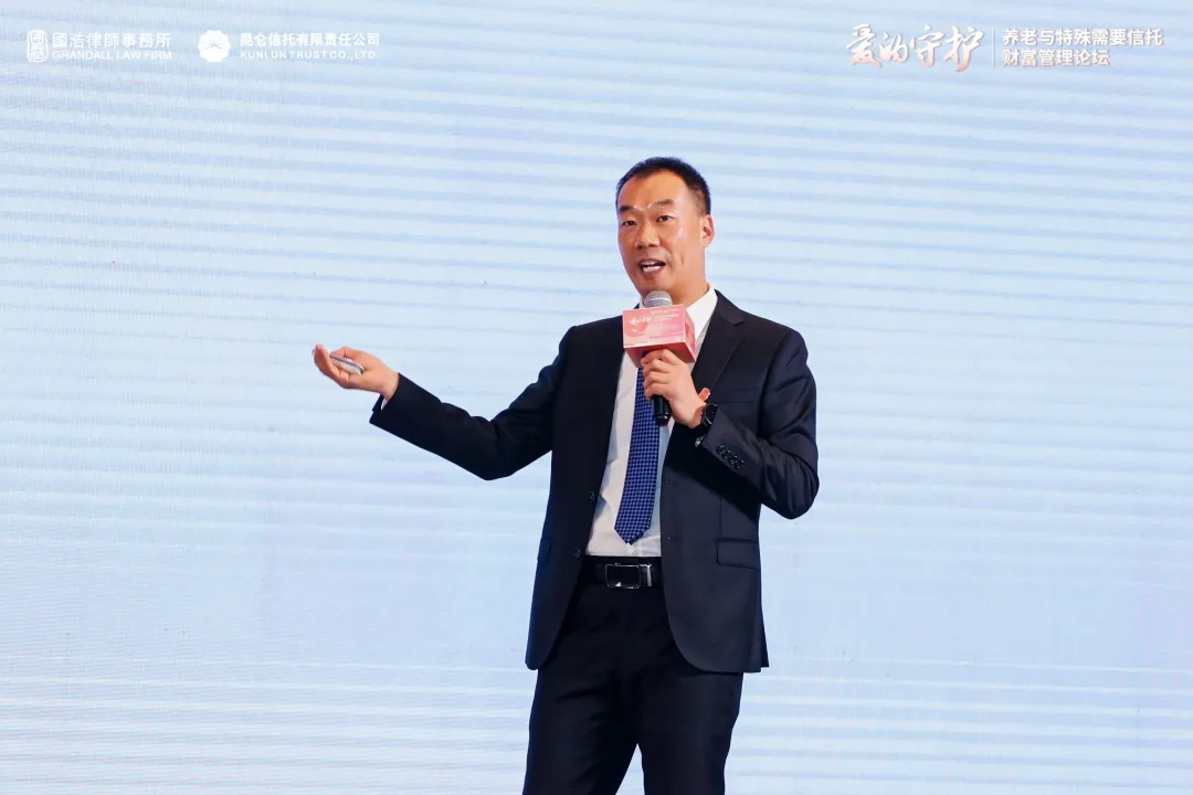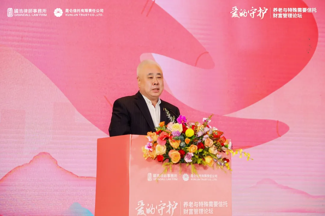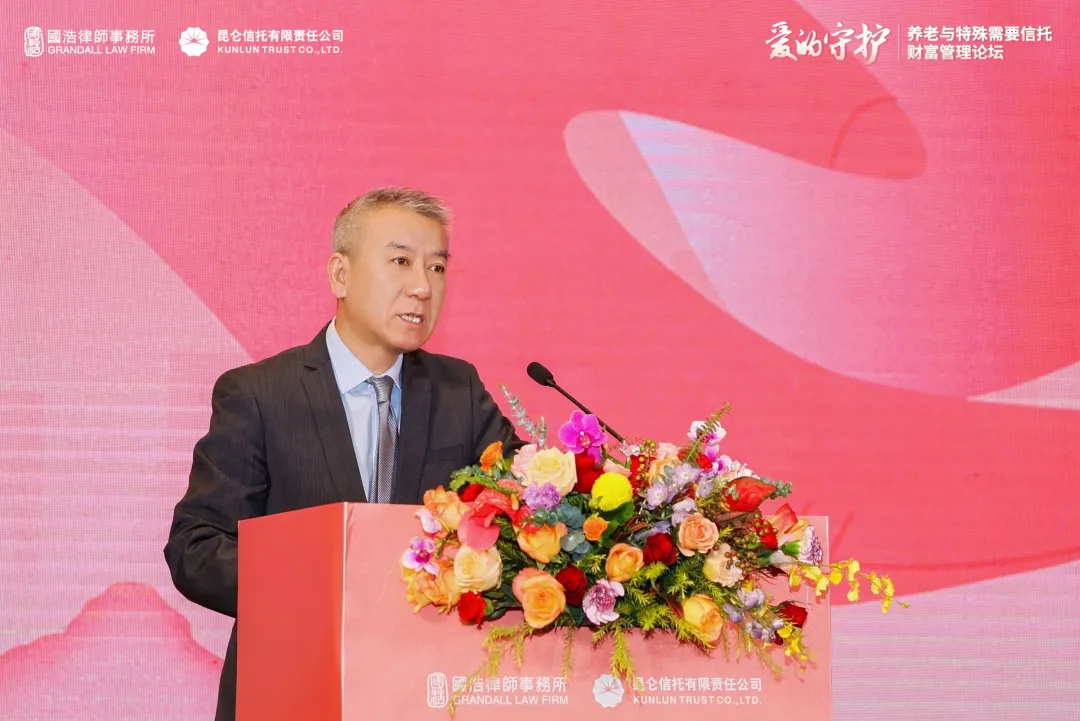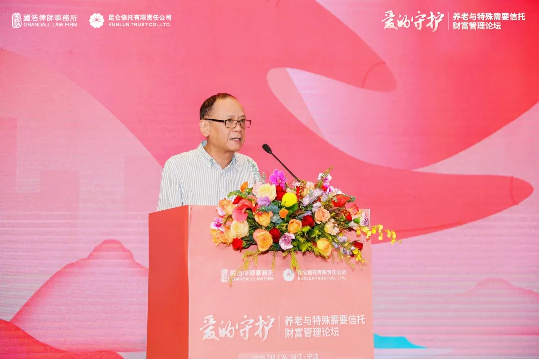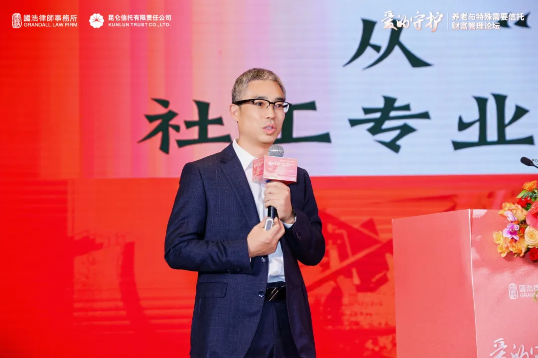 昆侖信托有限責任公司董事長王崢嶸介紹,信托作為一種源遠流長而又充滿現代活力的法律制度,以其獨特的財產獨立性、管理連續性和運作靈活性,在服務老年生活保障和特殊需要群體照護方面,具有天然的優勢和廣闊的應用前景。他強調,在服務老年與特殊群體這一使命上,昆侖信托與國浩律師事務所有著高度的共識與不懈的追求,其合作編制的《特殊需要信托操作指引》在論壇期間正式發布,正是基于這一共識的實踐成果,旨在為行業提供清晰規范可行的業務模板。他還表示,實踐中,信托制度的應用正不斷融入國家經濟社會發展的關鍵領域,特別是在民生保障和服務實體經濟領域。為此,他呼吁建立和完善信托財產登記制度,并出臺更具針對性的稅收優惠政策,以提升信托服務老年與特殊群體功能的全面發揮,推動信托更好地服務社會福祉。
