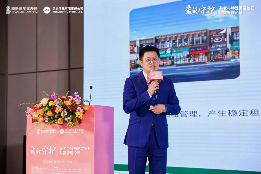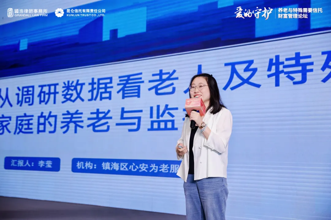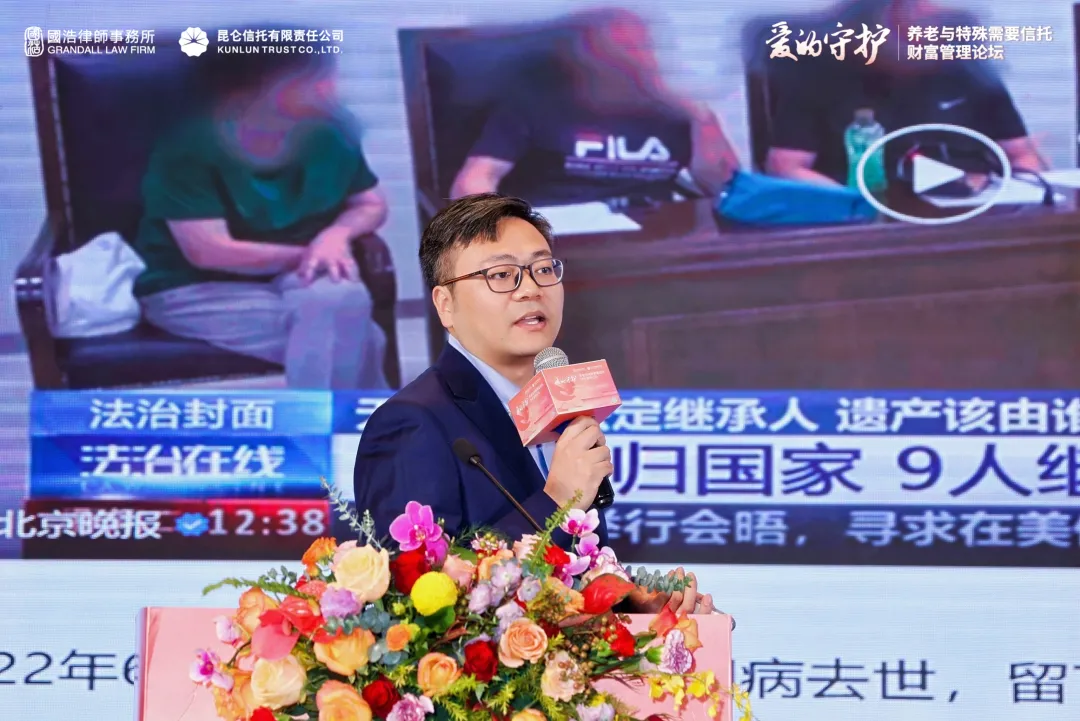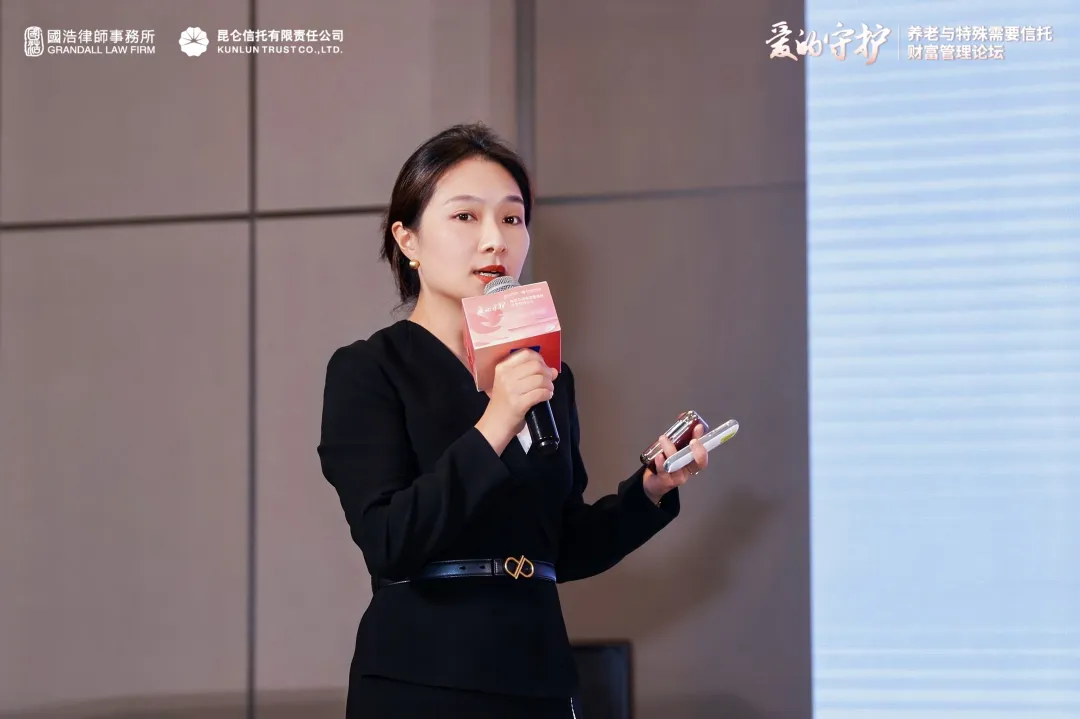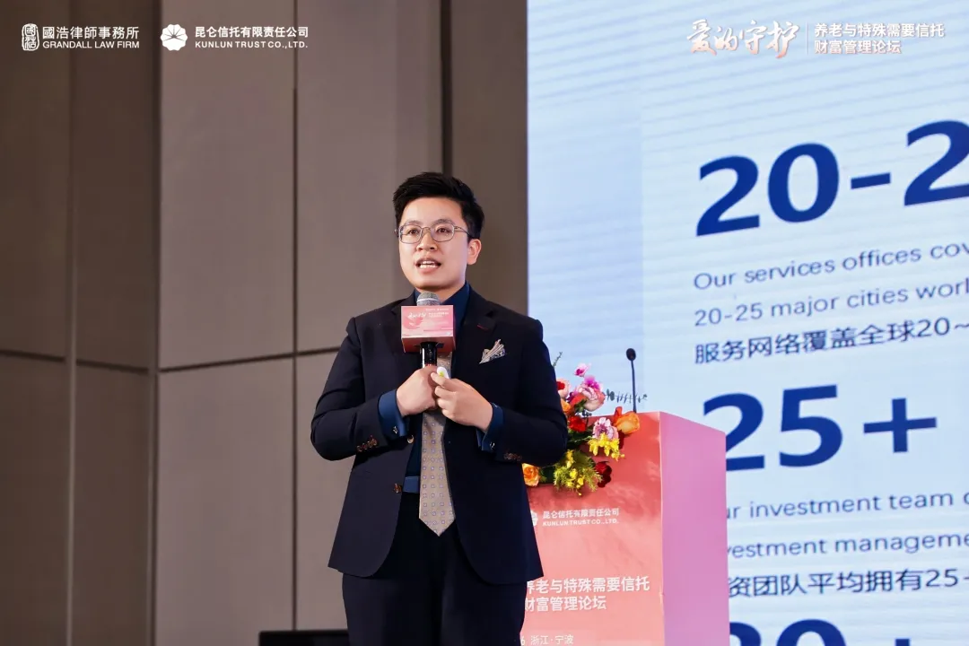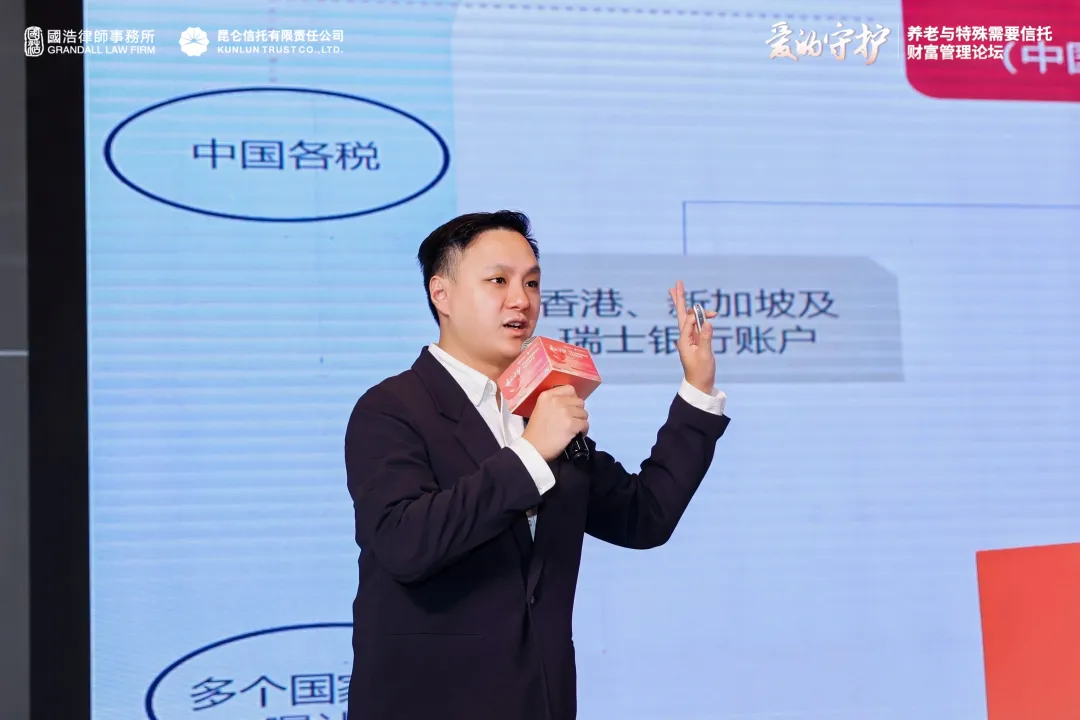 國浩財富管理與家事法律研究中心研究員、國浩寧波律師李國旗主導搭建與設計了中國內地首單營業性遺囑信托、養老服務信托、特殊需要信托,是中國內地信托法律服務領域的開拓者。他從專業實踐出發,深入剖析了信托制度在應對老齡化挑戰中的獨特價值。他系統比較了家族信托、養老信托、特殊需要信托等不同工具的應用場景與法律邊界,并著重論證了如何通過嵌入意定監護與監察人角色,增強信托安排的制度韌性,以保障委托人的意志能夠跨越生命周期持續有效。論壇現場,李律師的一位家有心智障礙子女的客戶的真誠分享更是打動了所有人,他的一句“是信托的安排,讓我真正放下了對未來的焦慮”,真切展現了專業法律服務帶來的安心與力量。
