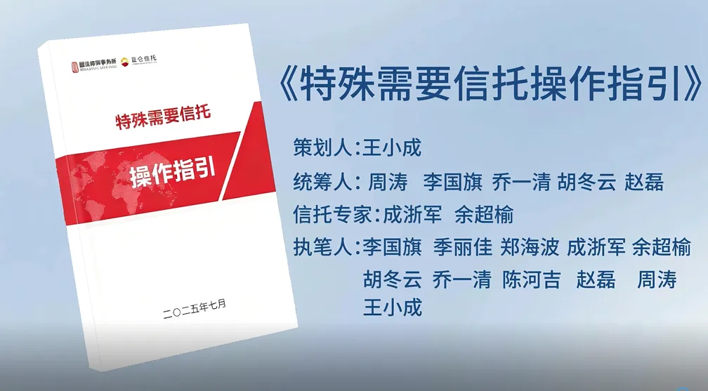 《特殊需要信托操作指引》由國浩財富管理與家事業務委員會暨法律研究中心、昆侖信托有限責任公司基于實踐案例共同編制,系統梳理了特殊需要信托的設立流程、受托人職責、監察機制及風險防范等要點,填補了行業實操標準的空白。指引明確,特殊需要信托應以服務失能失智、心智障礙等群體為核心,通過“信托+慈善”“信托+監護”等模式,構建可持續的保障體系。