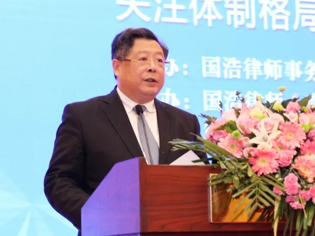 薛濟(jì)民會(huì)長(zhǎng)代表江蘇省律師協(xié)會(huì)在致辭中表示,中國(guó)已經(jīng)進(jìn)入了新的時(shí)代,黨的十九大提出打造共建共享的社會(huì)治理格局,提高社會(huì)治理社會(huì)化、法制化、智能化、專業(yè)化水平,這為加強(qiáng)和創(chuàng)新社會(huì)治理指明了方向。依法規(guī)范、公正地解決爭(zhēng)議,是創(chuàng)新社會(huì)治理的一個(gè)重要方式。他指出,新時(shí)代需要我們把握新常態(tài)下民商事糾紛的新特點(diǎn),積極探索在新格局下運(yùn)用新戰(zhàn)略、新理念、新舉措和新方式。要緊緊圍繞建設(shè)現(xiàn)代化經(jīng)濟(jì)體系,深化供給側(cè)結(jié)構(gòu)改革,加快完善市場(chǎng)經(jīng)濟(jì)體制等理論研究,主動(dòng)積極參與化解經(jīng)濟(jì)轉(zhuǎn)型中重大結(jié)構(gòu)性失衡矛盾所引發(fā)的爭(zhēng)議,不斷提高投資、金融、知識(shí)產(chǎn)權(quán)等領(lǐng)域的專業(yè)服務(wù)能力,為構(gòu)建現(xiàn)代化經(jīng)濟(jì)體系做出貢獻(xiàn)。薛濟(jì)民還強(qiáng)調(diào),國(guó)浩是全國(guó)性品牌律師事務(wù)所,國(guó)浩等一批全國(guó)優(yōu)秀律師事務(wù)所落戶江蘇,對(duì)推動(dòng)江蘇律師業(yè)規(guī)?;⒁?guī)范化、品牌化發(fā)展,起到了積極的引導(dǎo)和推動(dòng)作用。