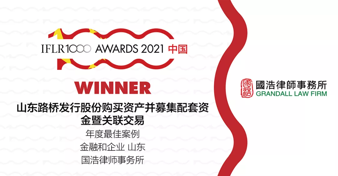 2021年8月19日,《國際金融法律評論》(IFLR1000)公布了2021 IFLR1000 中國大獎(IFLR1000 CHINA AWARDS 2021)獲獎名單,國浩律師事務(wù)所憑借在全國各省市強大的市場影響力,榮膺“年度最佳交易”和“年度最佳律師”等獎項。