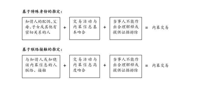 一,內幕信息公開前,內幕交易行為人與內幕信息知情人或知曉該內幕信息的人聯絡、接觸;第二,內幕交易行為人的證券交易活動與內幕信息高度吻合。換言之,如果證監部門未就上述兩點舉證的話,不應適用推定認定存在內幕交易。