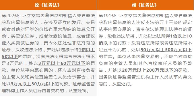 強監管、嚴監管的趨勢下,新《證券法》極大提高了內幕交易的處罰基數和罰款上限:罰款上限從違法所得的5倍提高到10倍;對于沒有違法所得或違法所得較小的(“較小”的標準由3萬元以下提高至50萬以下),罰款金額從3~60萬元提高到50~500萬元;對于單位從事內幕交易的,責任人員的罰款金額從3~30萬元提高到了20~200萬元。可見,處罰標準大幅提高了。違法成本的增加,可能會遏制潛在違法行為人的違法動機,當然,一旦依照新《證券法》被認定為存在內幕交易,無論獲利與否,行為人都將面臨巨大的經濟損失。