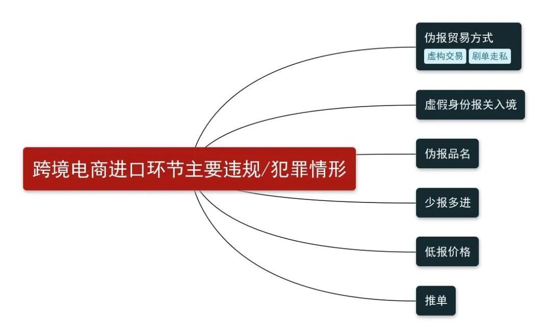 經過比較研究,筆者統計出以下幾種跨境電商進口環節典型違規/犯罪情形: